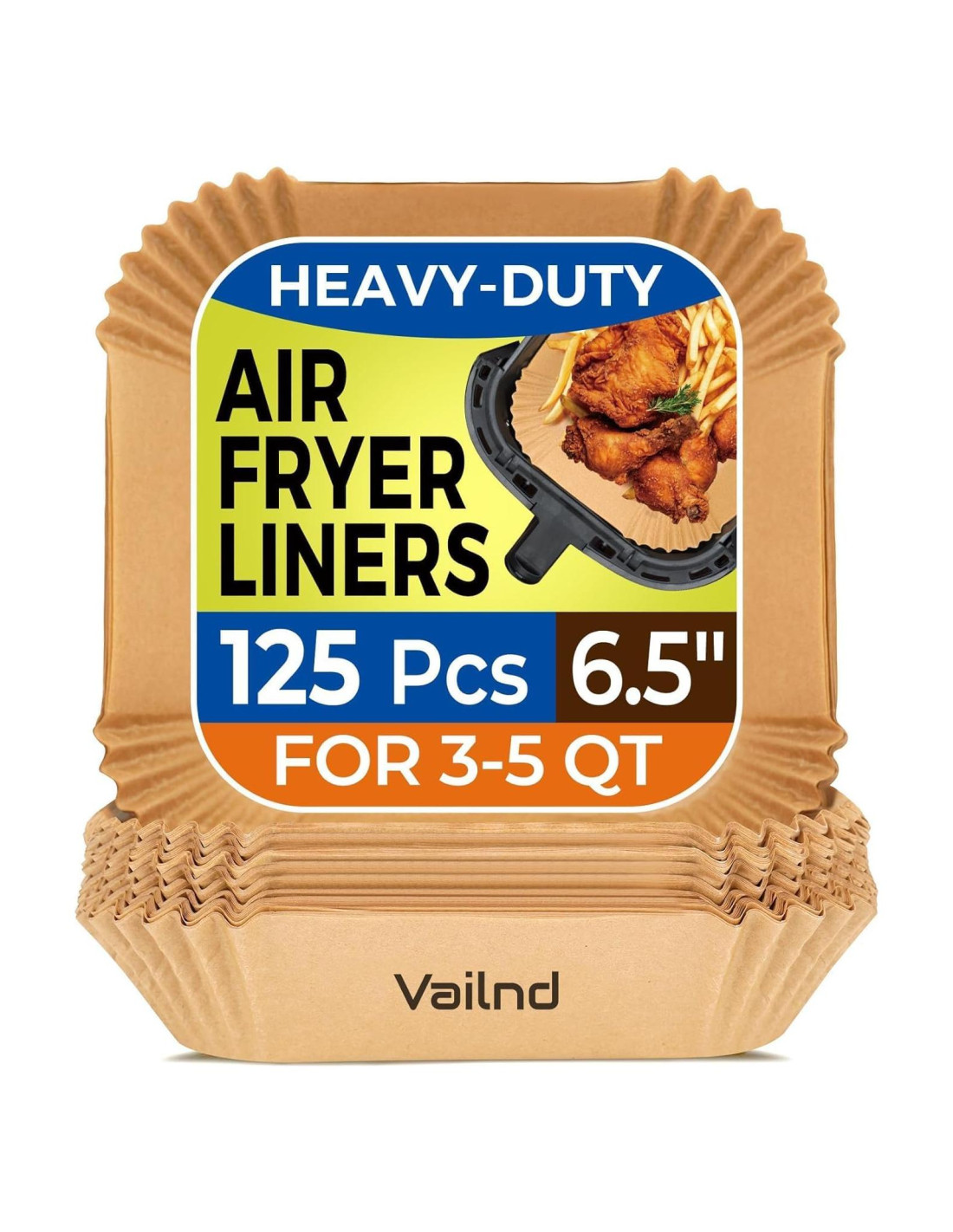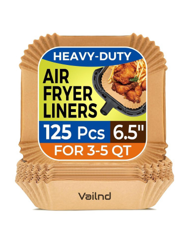 Sin desorden, sin fregado: Hecho de pulpa de madera natural con recubrimiento apto para alimentos, solo coloca, usa y tira. FORROS DE PAPEL PARA FREIDORA DE AIRE. FORROS DE PAPEL PARA FREIDORA DE AIRE. FORROS DE PAPEL PARA FREIDORA DE AIRE. Especificación 125PCS-Cuadrado-8in. Especificación 125PCS-Cuadrado-9in. Especificación 125PCS-Cuadrado-6.5in. Materias Primas Papel de pulpa de madera virgen sin blanquear. Materias Primas Material de silicona saludable resistente a altas temperaturas. Materias Primas Papel de pulpa de madera virgen sin blanquear. Problemas de limpieza No es necesario limpiar, úsalo y tíralo. Problemas de limpieza Apto para lavavajillas y fácil de lavar a mano. Problemas de limpieza No es necesario limpiar, úsalo y tíralo. Apto para Freidora de aire de 5-8QT (4.7-7.6 L), microondas, horno, vaporera, olla, etc. Apto para Freidora de aire de 8-12QT (7.6-11.4 L) y más grande, microondas, horno, vaporera, olla, etc. Apto para Freidora de aire de 3-5QT (2.8-4.7 L), microondas, horno, vaporera, olla, etc. Colócalo. Cocínalo. Listo. Nuestra historia comenzó con una realización: En la cocina, por eso creamos herramientas que facilitan, no complican. Nos dimos cuenta de que nuestro forro no solo bloqueaba la grasa, sino que creaba espacio para. Así nació Vailnd, fusionando 'velo' (cubrir) con 'y' (conectar):. Vailnd es una marca de estilo de vida que reinventa la cocina, comenzando con una simple capa. Nuestros forros de freidora de aire traen menos desorden, cocción más fácil y más alegría en cada comida. Creemos que las mejores herramientas se desvanecen en el fondo, hasta que no puedes cocinar sin ellas. Cubriendo el desorden y revelando la alegría de cocinar. Diseñamos productos que funcionan en silencio pero simplifican tu rutina en la cocina sin problemas: menos estrés por la limpieza, menos desorden de qué preocuparse, más disfrute al cocinar. Trayendo claridad y calma a cada cocina. Hoy en día, las freidoras de aire son ampliamente utilizadas en casa, el papel para freír puede ahorrar limpieza complicada, mantener el sabor original de los ingredientes.