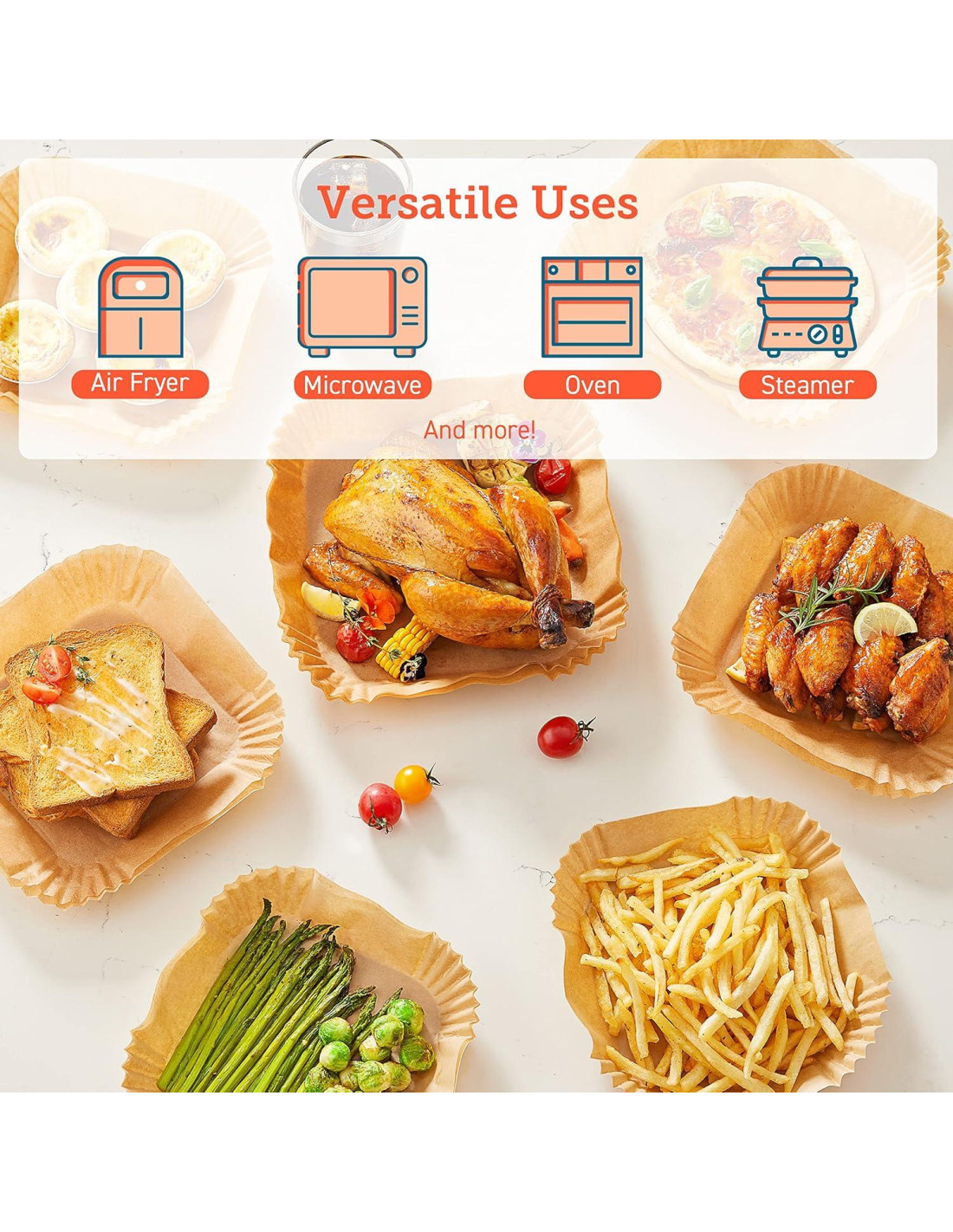 - FÁCIL DE USAR: Los forros desechables están diseñados para adaptarse a la forma de su cesta de freidora de aire, por lo que no necesita perder tiempo doblándolos o cortándolos, solo colóquelo en la cesta cuando esté listo para cocinar.