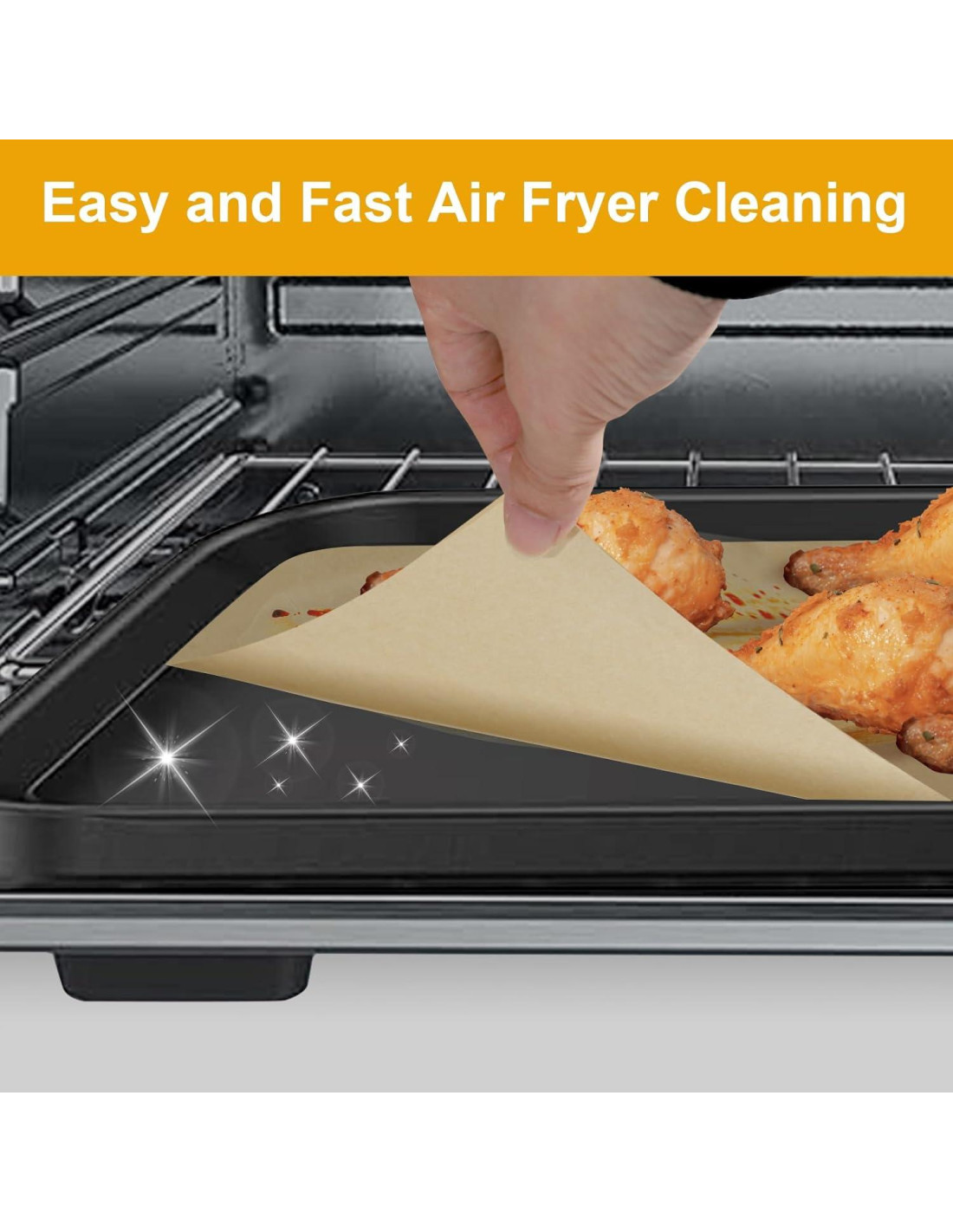 - No es necesario limpiar: Nuestras fundas para freidora de aire no requieren rasgar, doblar, cortar o doblar. Simplemente colócalas directamente en tu freidora de aire al cocinar, y cuando termines, desecha la funda de papel pergamino.