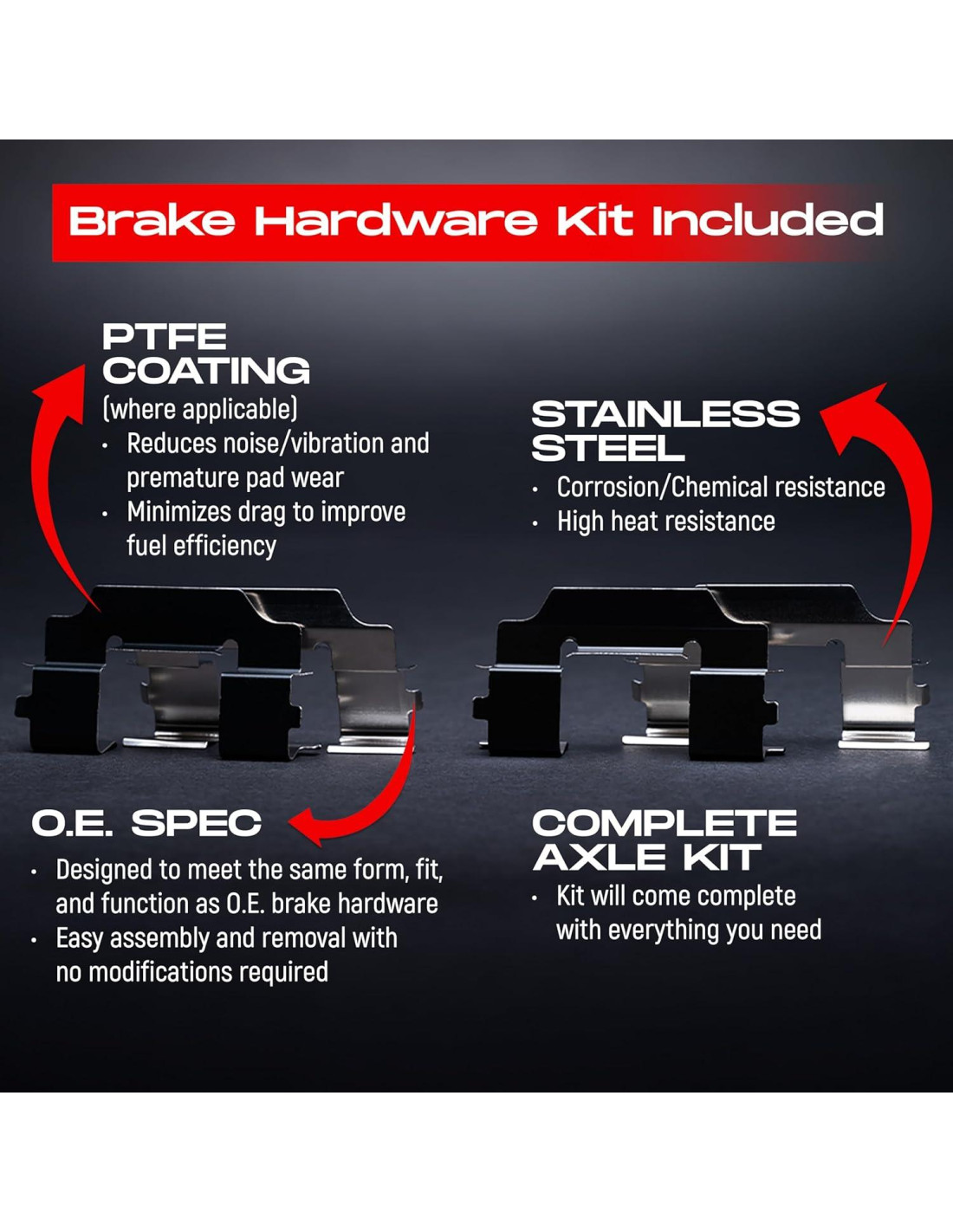 - Reemplazo Completo de Kit de Frenos Todo en Uno: El Kit de Frenos de la Serie Carbono R1 Concepts viene con (2) discos de freno de alto rendimiento (4) pastillas de freno de rendimiento y hardware