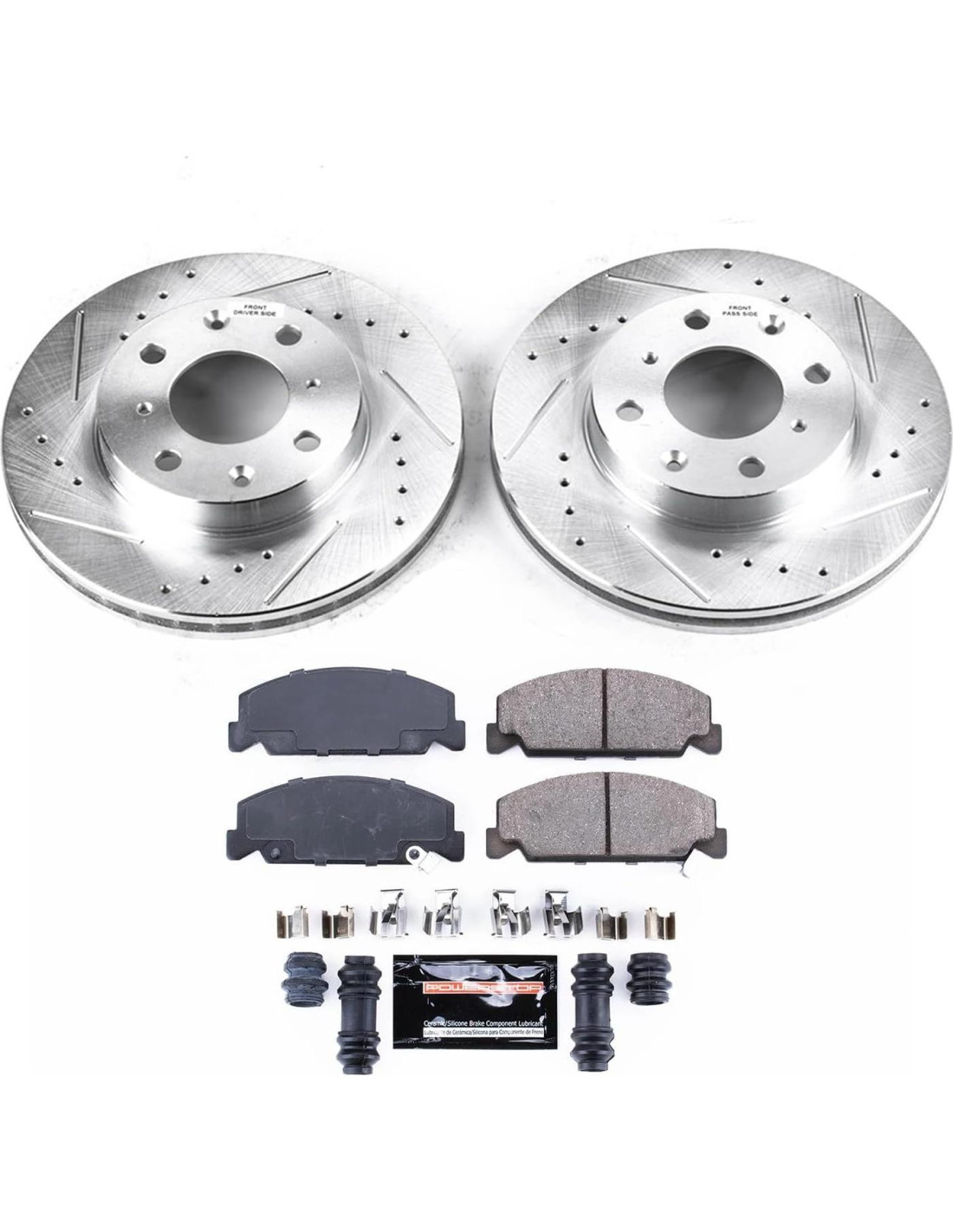 - Modelo: Frenos de fibra de carbono Z23 Power Stop K699 con kit de rotores de freno perforados y ranurados