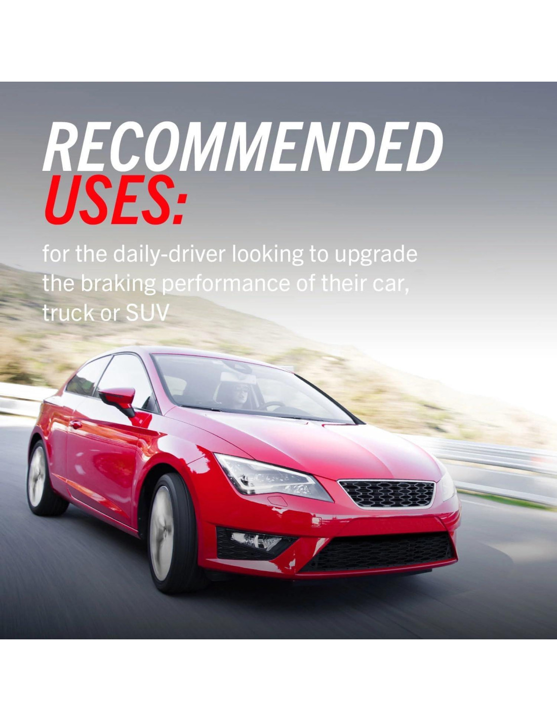 - Componentes personalizados están diseñados para trabajar juntos para un poder de frenado superior en tu vehículo diario