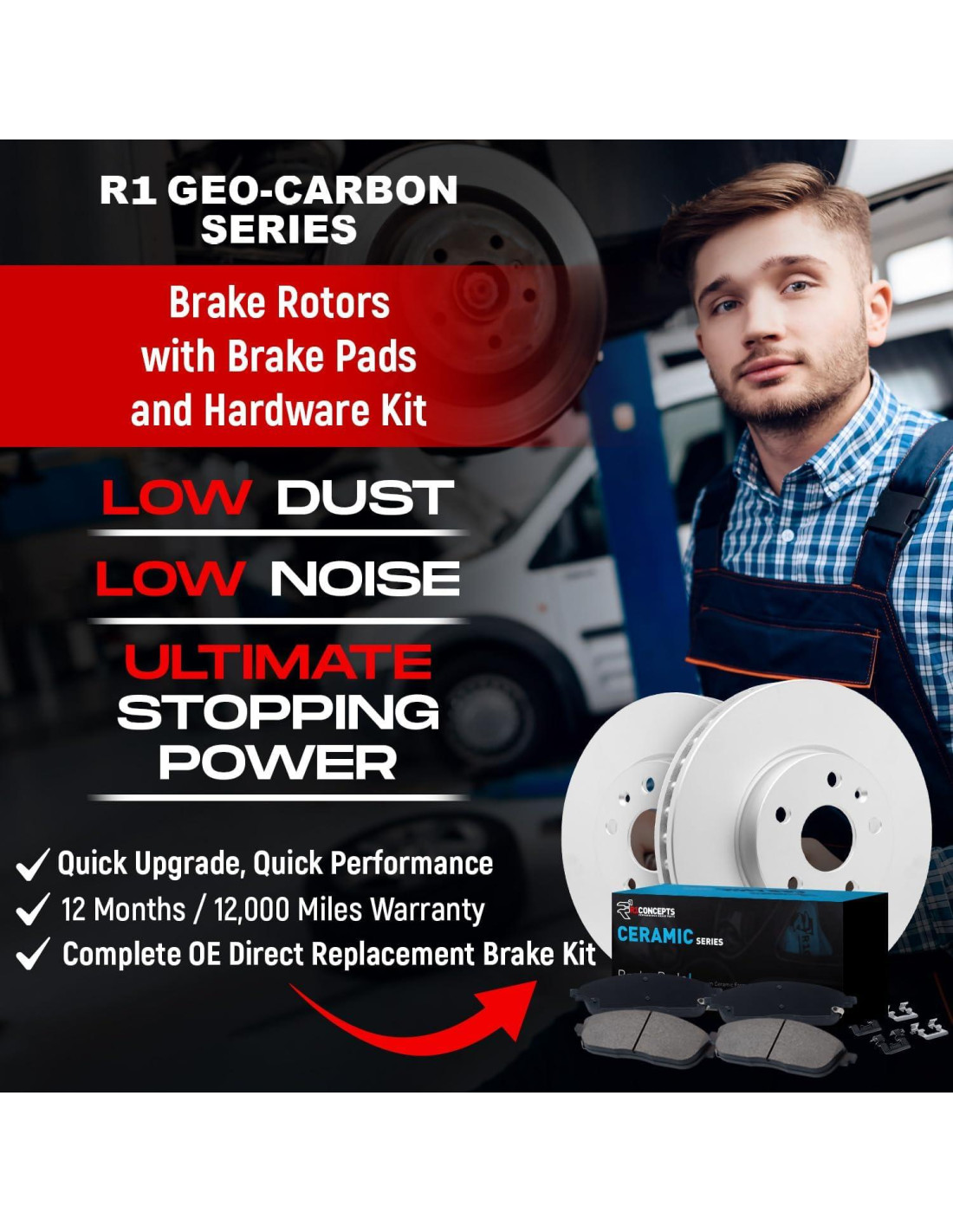 - Reemplazo Completo de Kit de Freno Todo en Uno: El Kit de Freno Delantero y Trasero de la Serie Carbono de R1 Concepts viene con (2) discos de freno de alto rendimiento (4) pastillas de freno de rendimiento y hardware