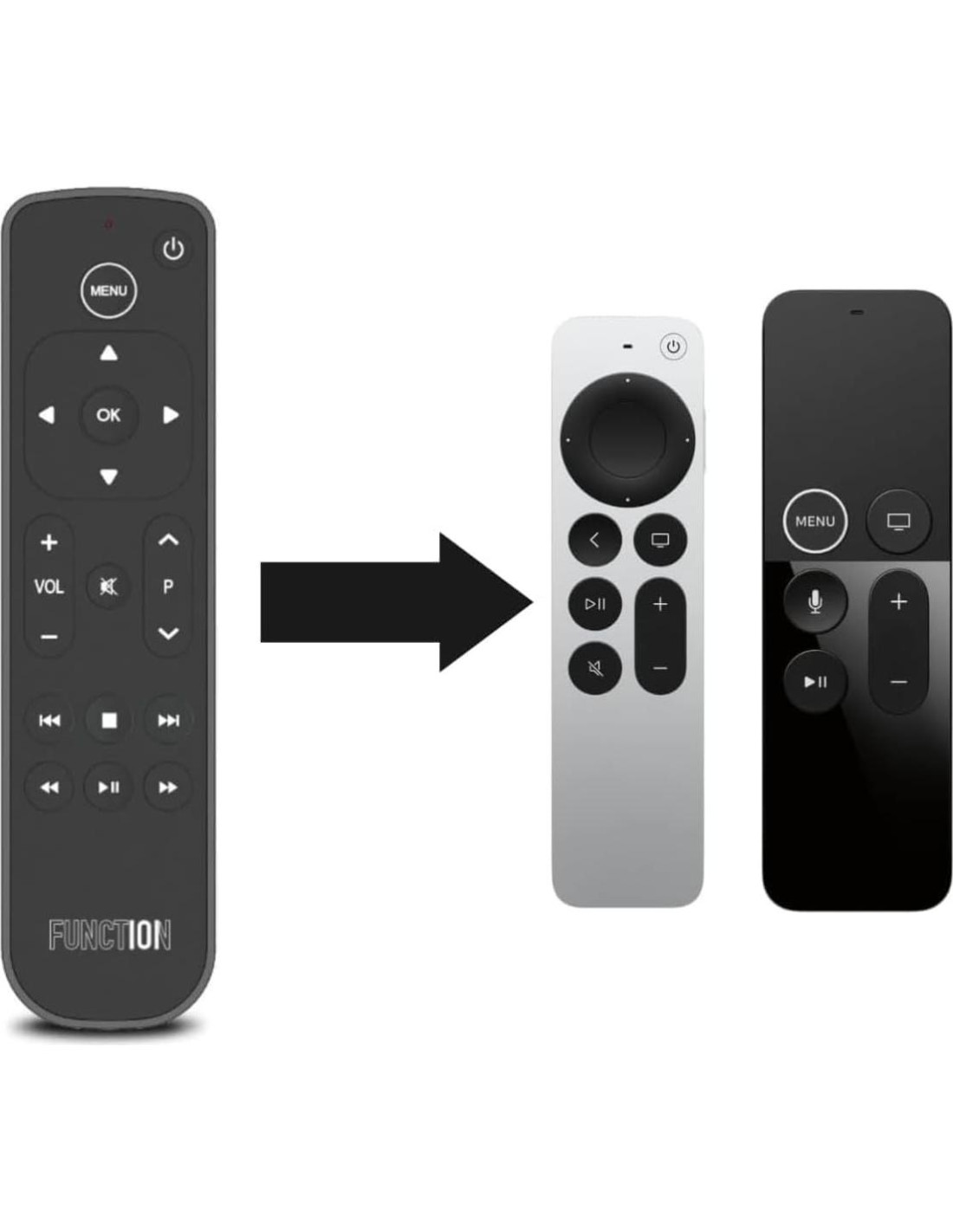 - FUNCIONA DIRECTAMENTE CON APPLE TV Y APPLE TV 4K: Diseñado con botones de control remoto tradicionales que los clientes están acostumbrados, navegar por Apple TV es fácil con el Control Remoto de Botón Function101. IMPORTANTE: Si no funciona directamente, asegúrate de tener una línea de visión. Si aún no funciona, CONTACTA AL SOPORTE ya que puede haber un conflicto con el Control Remoto Harmony antiguo o el Control Remoto de Apple TV de 1 generación (sin Siri).