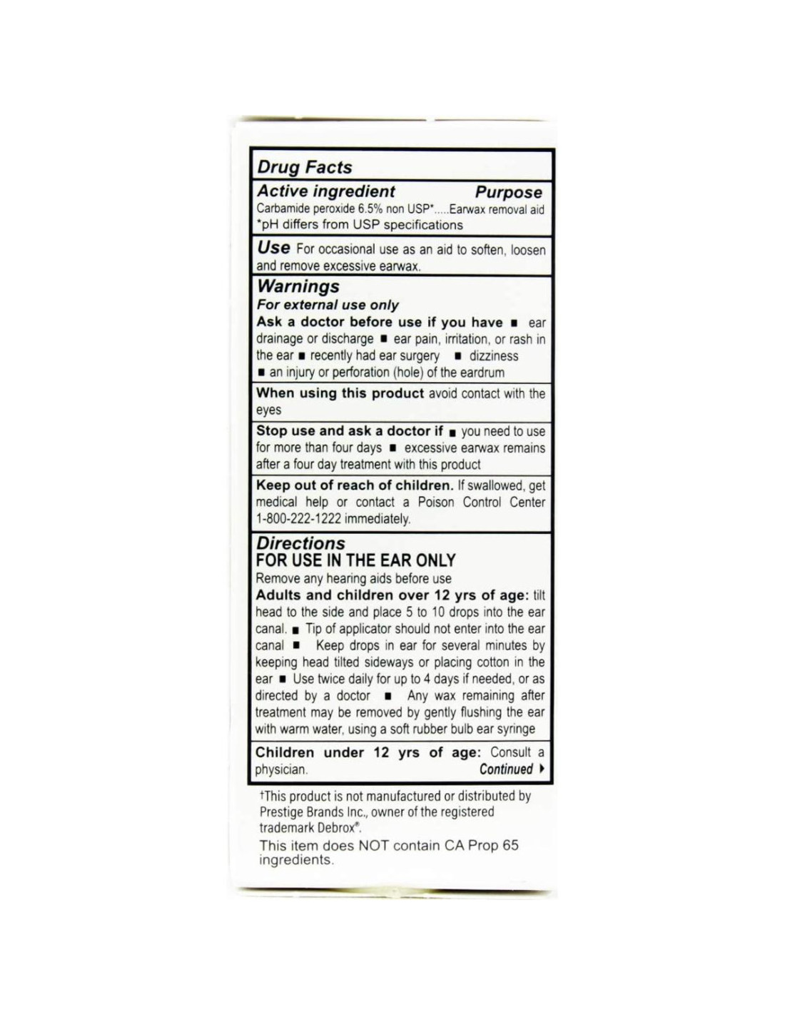 - No fabricado por Prestige Brands Inc, propietario de la marca registrada Debrox