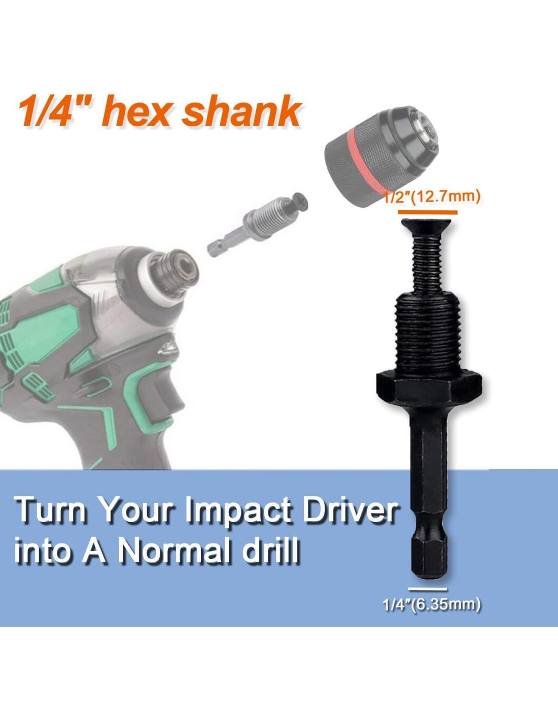 - El paquete incluye: 1 * Adaptador de Chuck de Taladro Sin Llave de 1-13mm, 1 * Convertidor de Socket Cuadrado de 1/2", 1 * Mango SDS-Plus, 1 * Mango Hexagonal de 1/4"