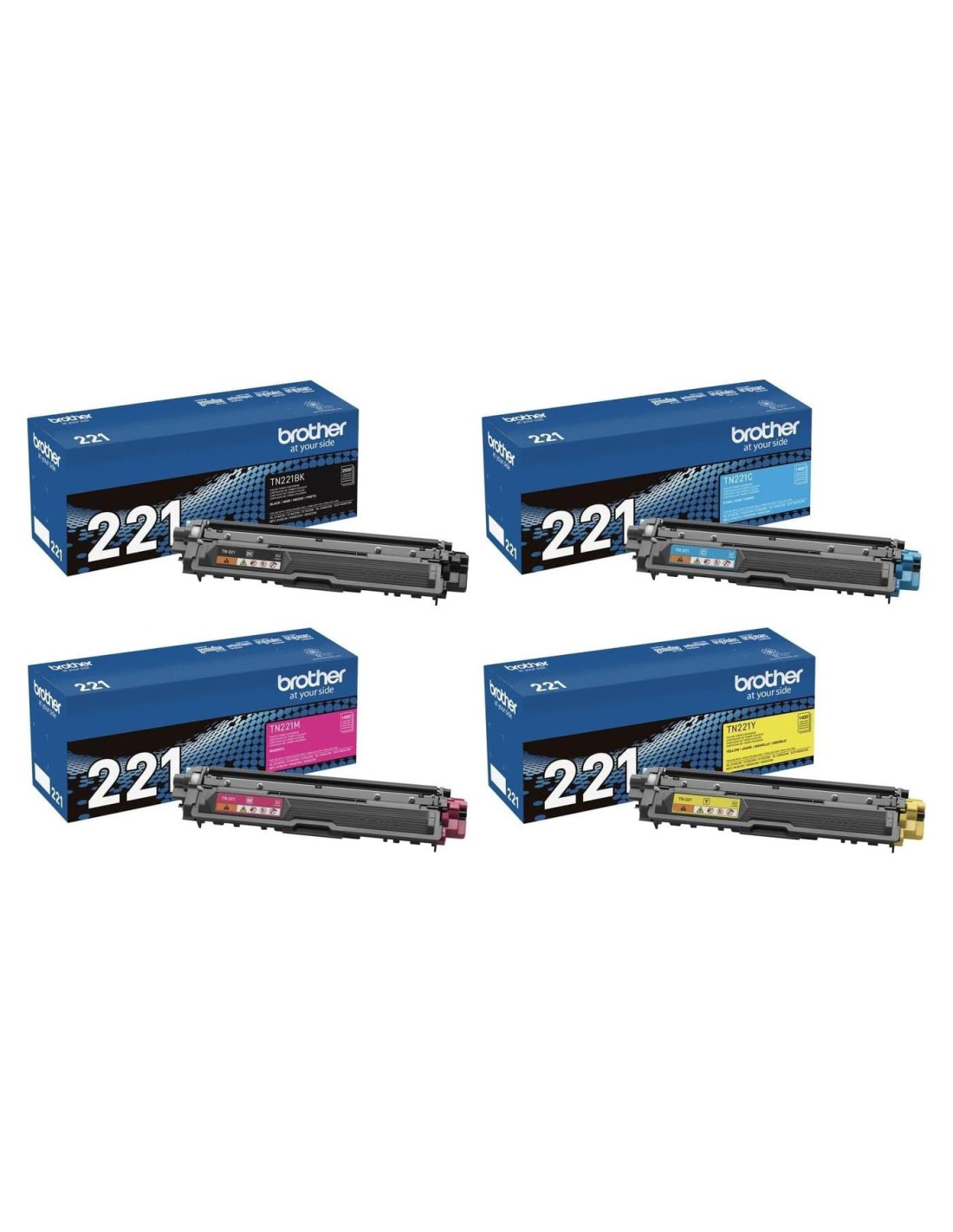 Cartucho de Tóner de Color Brother TN221 (TN-221) (BK/C/M/Y) Paquete de 4 (TN221BK, TN221C, TN221M, TN221Y) Brother HL-3140CW, HL-3170CDW, MFC-9130CW, MFC-9330CDW y MFC-9340CDW.