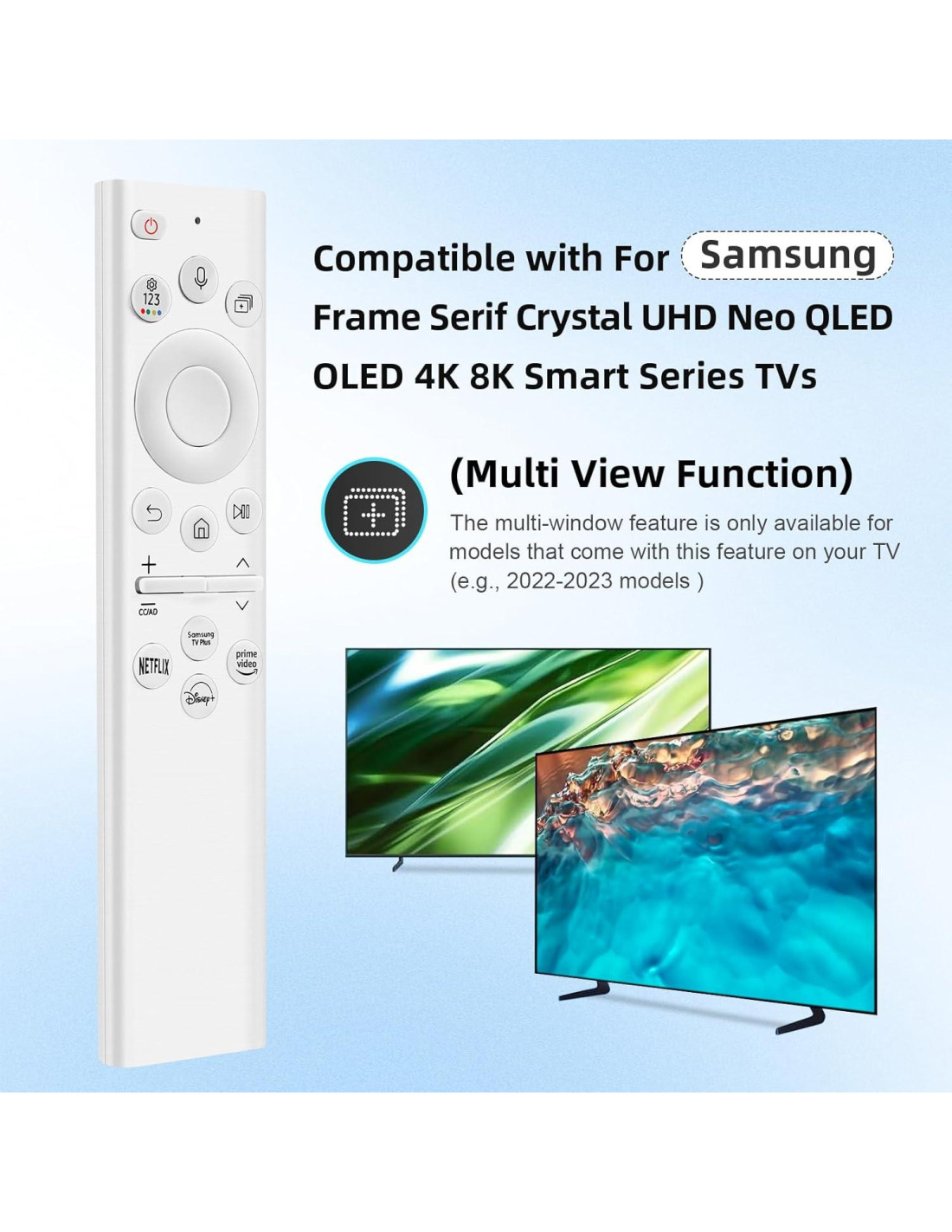 - [Compatible con modelos de control remoto Samsung] BN59-01259E, BN59-01312B/H/G, BN59-01312F, BN59-01312M, BN59-01312A, BN59-01199F, BN59-01259B, BN59-01260A, BN59-01266A, BN59-01241a, BN59-01301A