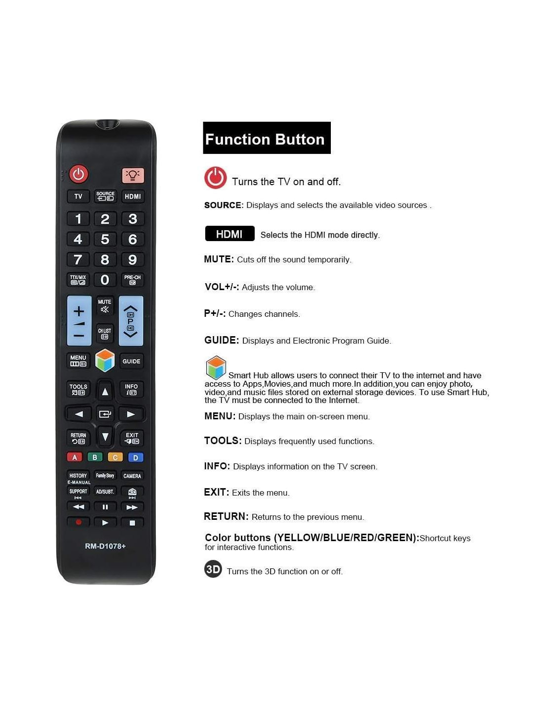- Control remoto universal compatible como reemplazo para TV/ LCD/ LED/ HDTV/ Smart TV de Samsung.