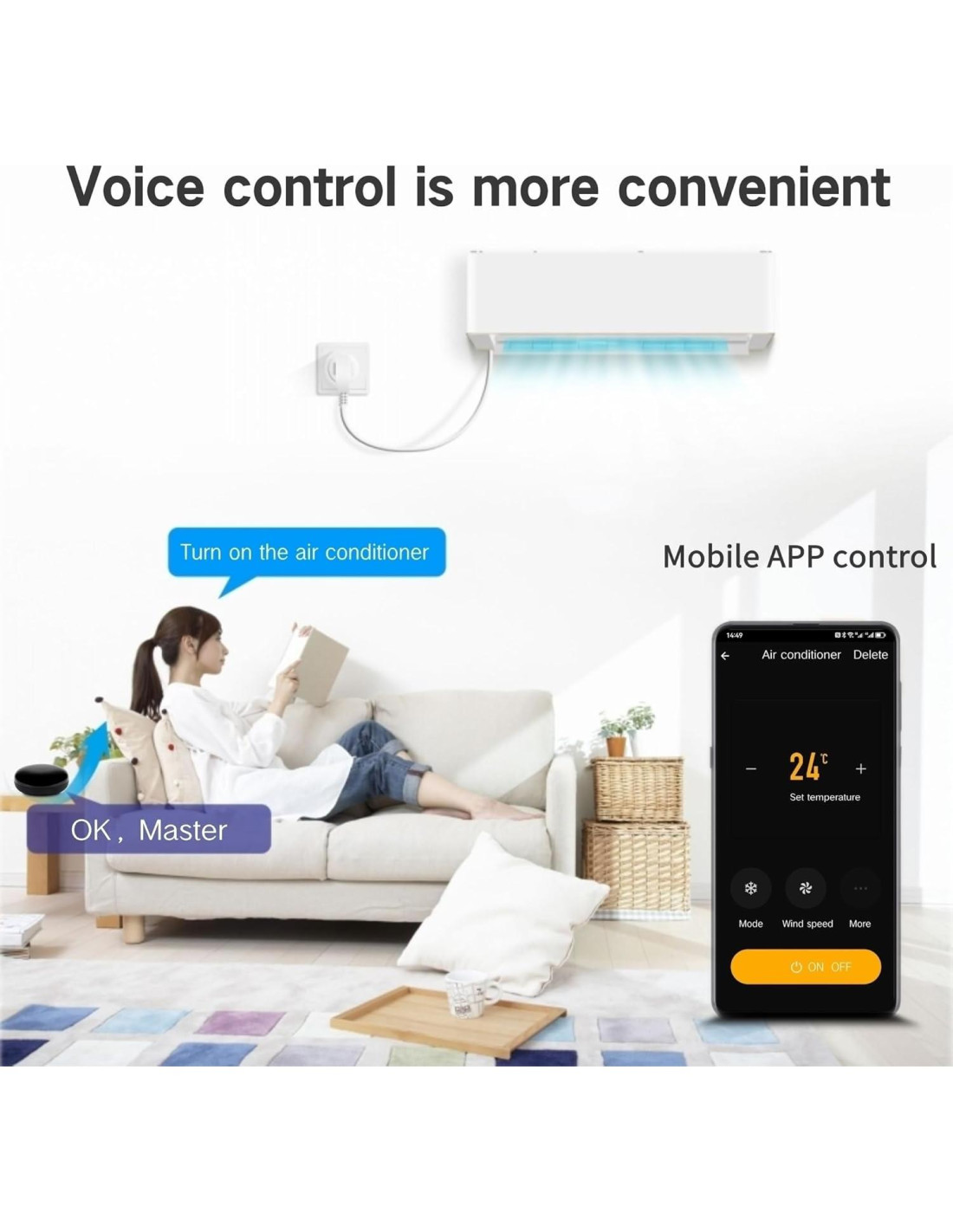 - [Control Todo en Uno] Comprometido a activar aires acondicionados, TV, ventilador, proyector, DVD, STB, etc., podría conectar todos los electrodomésticos eléctricos infrarrojos, con esto, más y más problemas de los controladores remotos ordinarios pueden ser fácilmente resueltos. Y la vida controlada por electrodomésticos inteligentes mejorados será más conveniente. Solo soporta IR (38KHZ), RF no incluido. Cobertura de señal de 360 sin ángulo muerto.