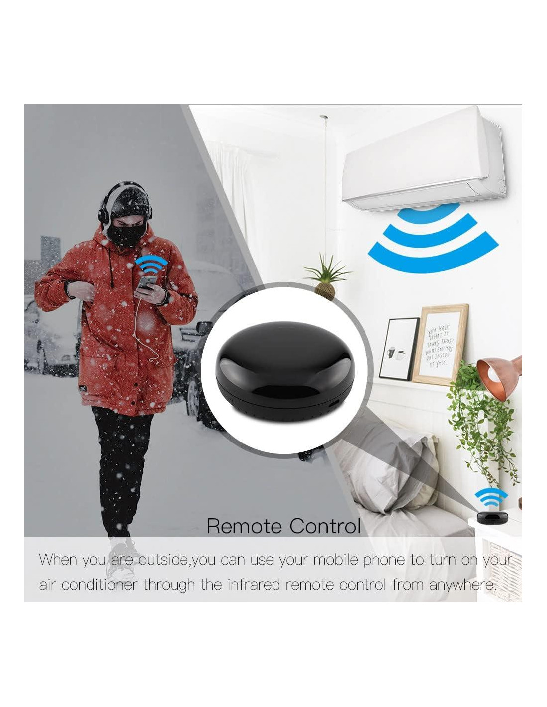 - 3. Control Remoto desde Cualquier Lugar: Equipado con el Controlador IR Inteligente MOES, puedes controlar dispositivos IR con la aplicación móvil gratuita "Smart Life/Tuya" en cualquier momento y lugar (Compatible con Android&iOS).