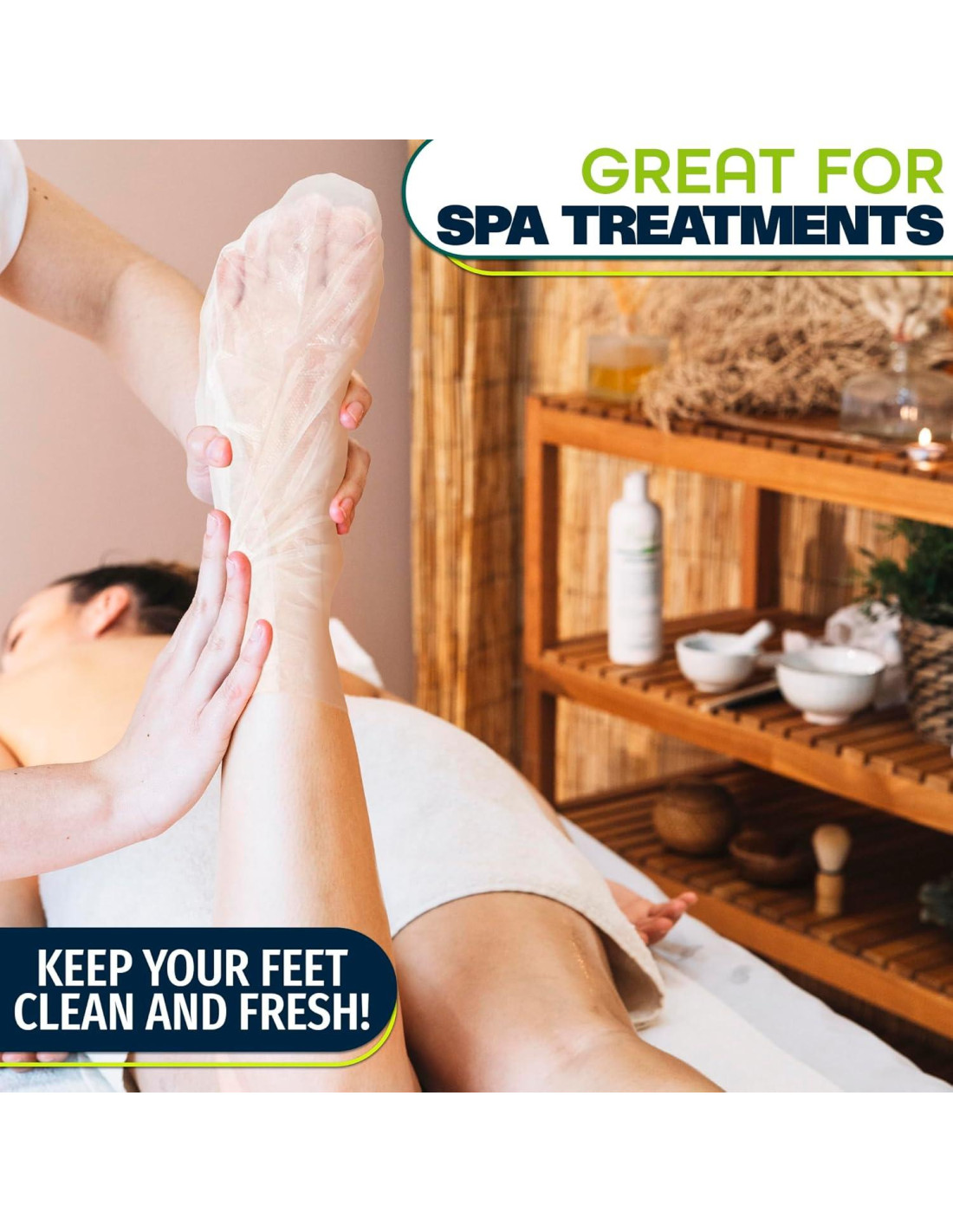 - Material Confiable y Cómodo: Hecho de material PE transparente y resistente al agua, estos forros desechables para baño de pies ofrecen una experiencia reconfortante y cómoda para el cuidado de pies secos