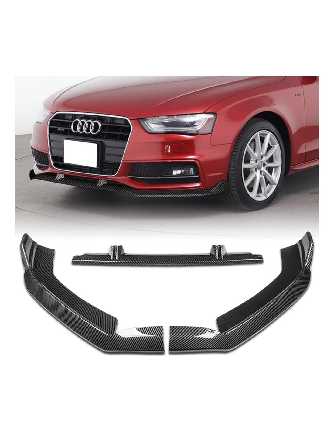Compatibilidad: Compatible con 2013 - 2016 Audi A4 Compatible con 2013 - 2016 A4 Quattro Compatible con 2013 - 2016 Audi S4 (Solo modelos S-Line) El paquete incluye: 1 x Kit de carrocería frontal de 3 piezas labio del parachoques NO SE INCLUYEN INSTRUCCIONES DE INSTALACIÓN Características: 100% Nuevo de fábrica que nunca ha sido usado o instalado Gran mejora para la apariencia exterior de su vehículo Instalación fácil (se requiere instalación profesional) Mejora la aerodinámica de su vehículo Le da a su vehículo una apariencia y estilo mejorados Hecho de ABS de alta calidad que es muy flexible y no se agrieta Le da a su vehículo un aspecto deportivo y agresivo