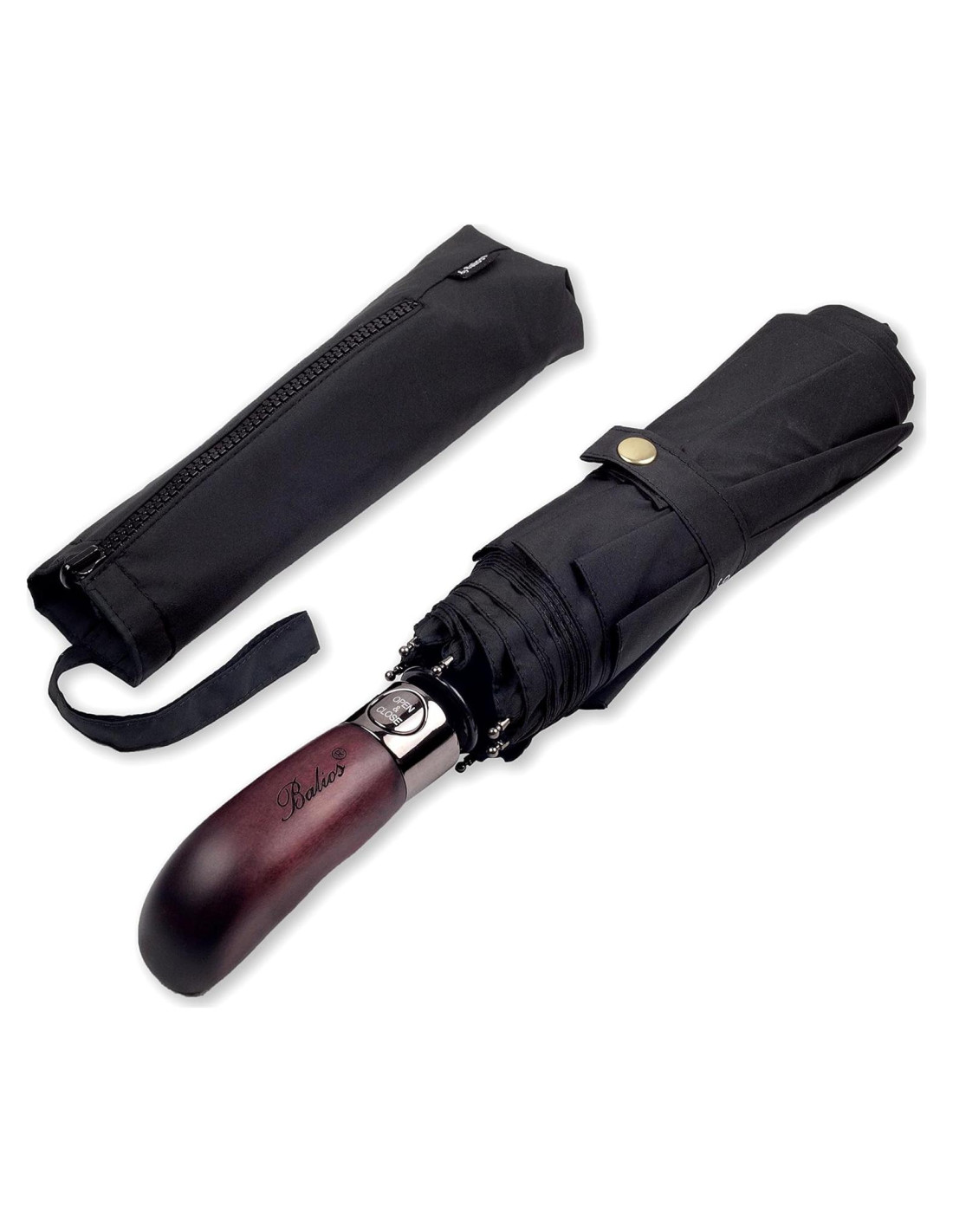 - MODELO: NEGRO CON MANGO DE MADERA REAL; ACCESORIO DE ESTILO DE VIDA PERFECTO con función Auto Abre/Cierra.