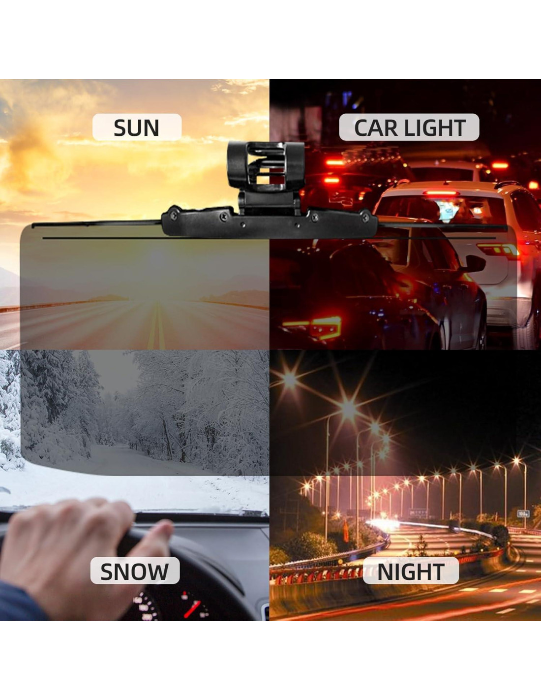- [Anti-Deslumbrante, Visor de Visión Nocturna, Protector de Ojos] Ya seas conductor o pasajero, el Extensor de Visera FuKuEn filtrará eficazmente la luz fuerte que causa incomodidad visual en cualquier condición soleada, luces LED y luz de coche, ceguera por nieve, protege tus ojos, proporciona una vista más clara, para asegurar una conducción segura.