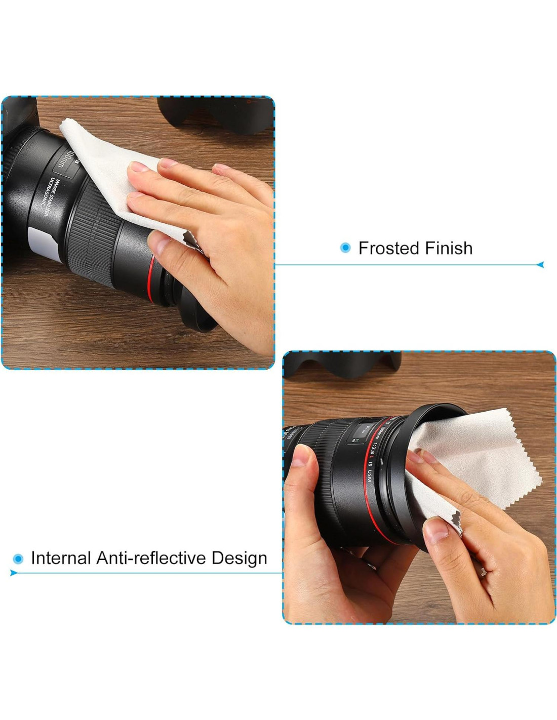 - Nuestra capucha de lente bloquea la luz solar excesiva y reduce el destello y el deslumbramiento de la lente, ofreciendo una solución versátil y confiable para fotógrafos que buscan mejorar la calidad de la fotografía y el video mientras protegen sus lentes de daños. Su material de goma flexible, diseño anti-reflectante y función protectora la convierten en una herramienta esencial en fotografía al aire libre o con poca luz.