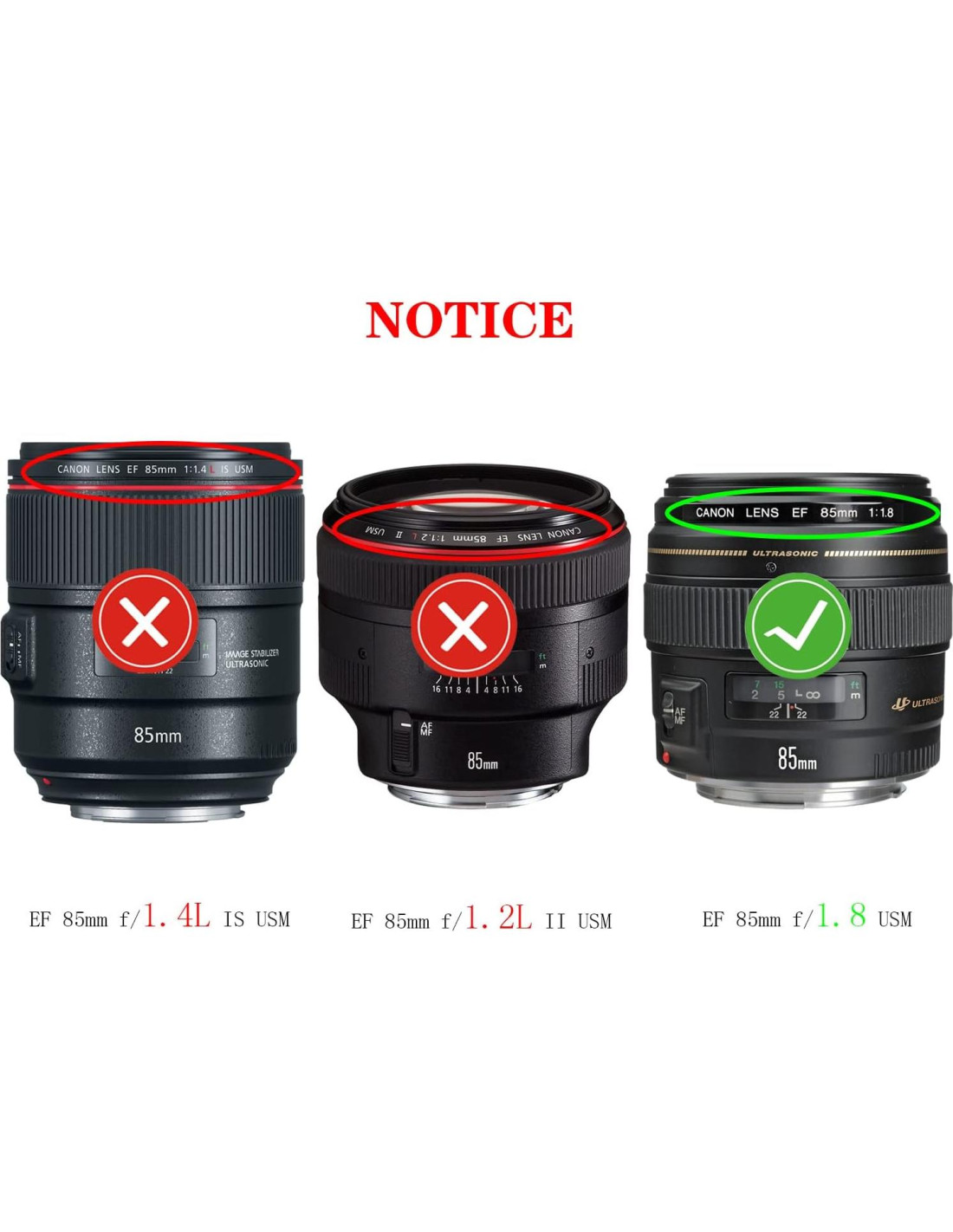 - Compatible para Canon EF 85mm f/1.8 USM, EF 100mm f/2 USM, EF 135mm f/2.8 Enfoque suave.
