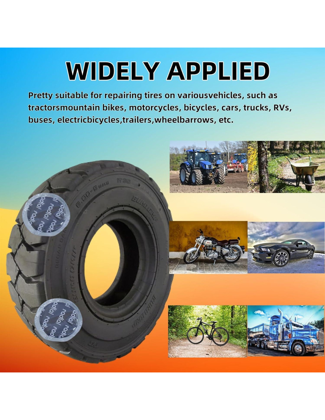 - ALTA CALIDAD: Nuestro parche de reparación de neumáticos está hecho de goma gruesa con alta elasticidad y adhesión, con buen sellado, fuerte adhesión, no es fácil de desgastar, fuerte y confiable. La capa de goma gruesa hace que la reparación del neumático sea más plana y le ayuda a reparar pinchazos de neumáticos de manera rápida y efectiva, puede usarse durante mucho tiempo, reduciendo la eliminación de neumáticos desechados, brindándole una experiencia eficiente y agradable durante su uso.