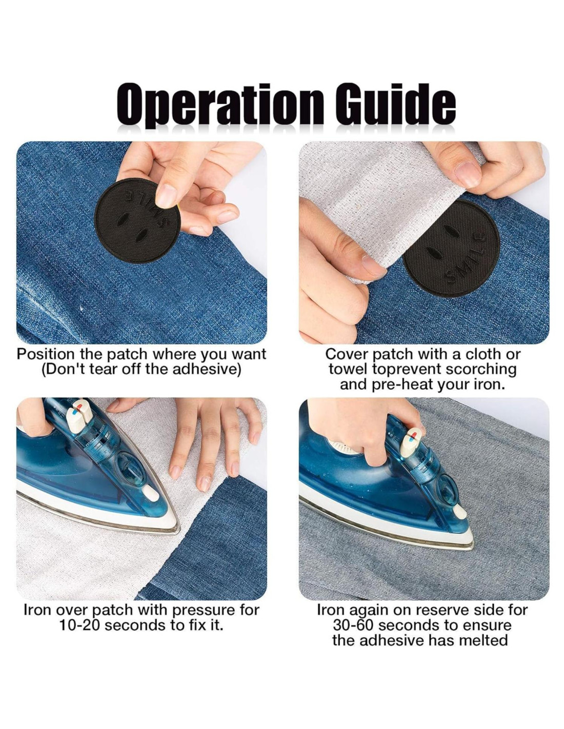 - Fácil de usar: El pegamento adhesivo de sellado por calor te da la opción de coser o planchar en todo tipo de tela; Y los parches también se pueden quitar fácilmente, puedes transferir y reutilizar los parches.