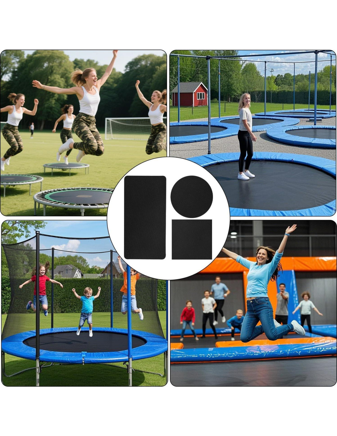 - Incluye paquete: Recibirás 6 piezas de parches autoadhesivos para trampolín en 3 formas, 2 piezas de cada forma, junto con 1 raspador y 5 toallitas húmedas/secos. La cantidad suficiente puede satisfacer tus necesidades de reparación de trampolines.