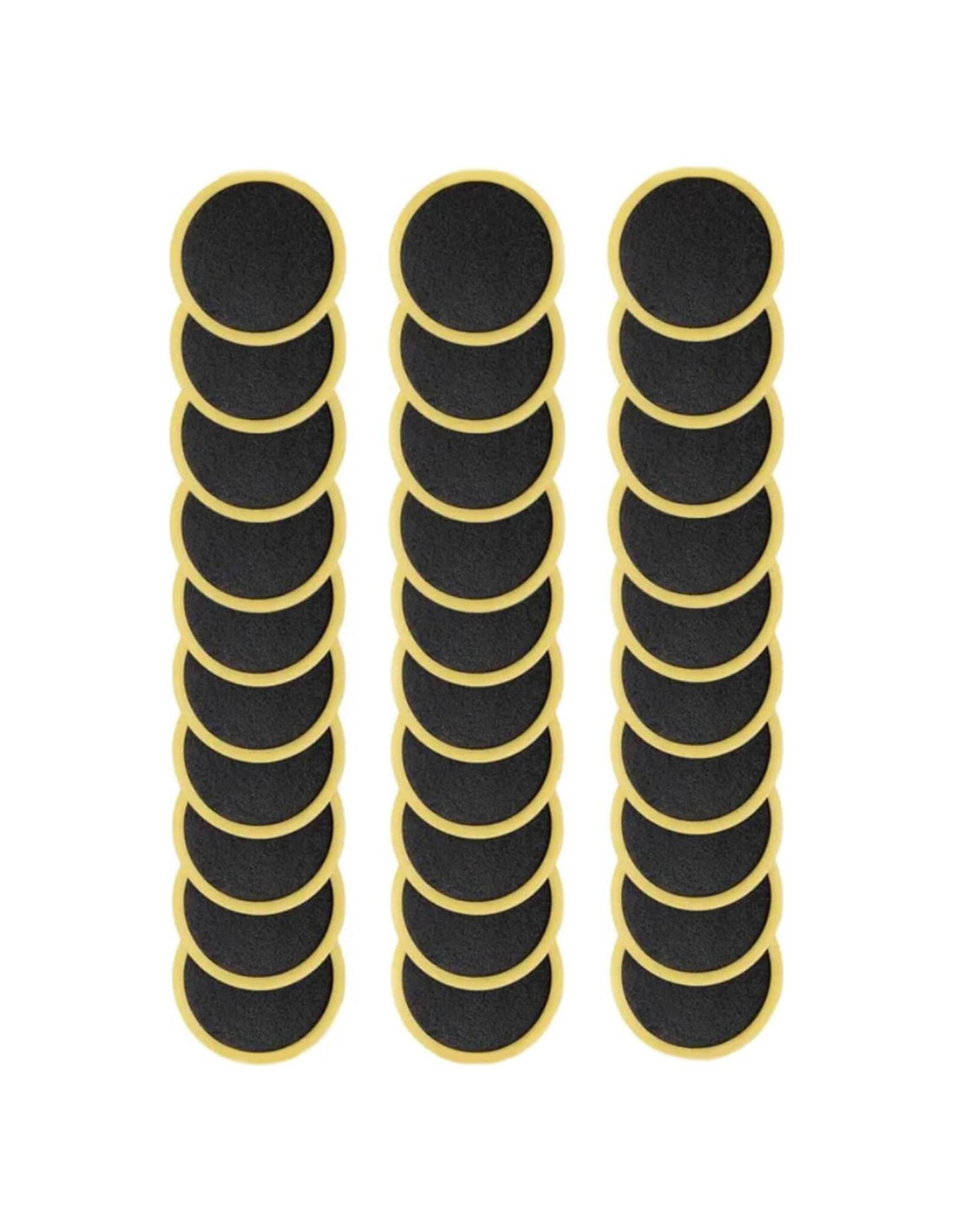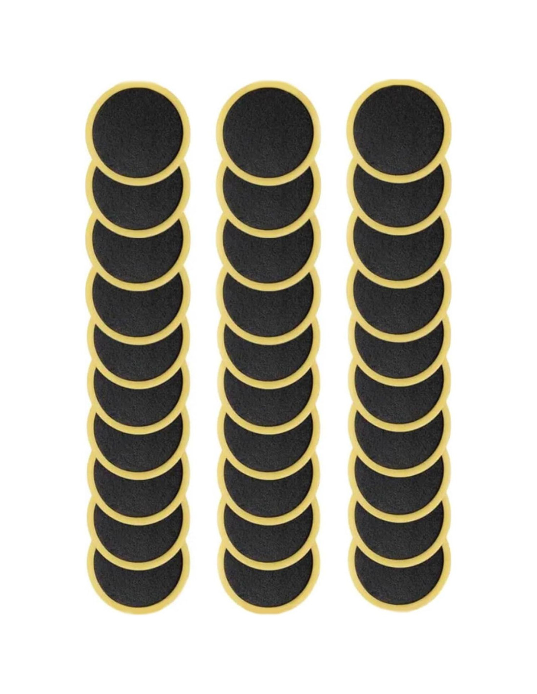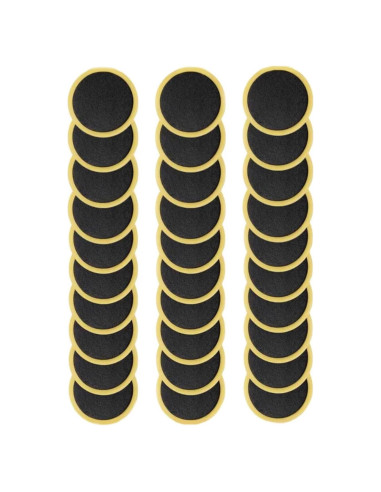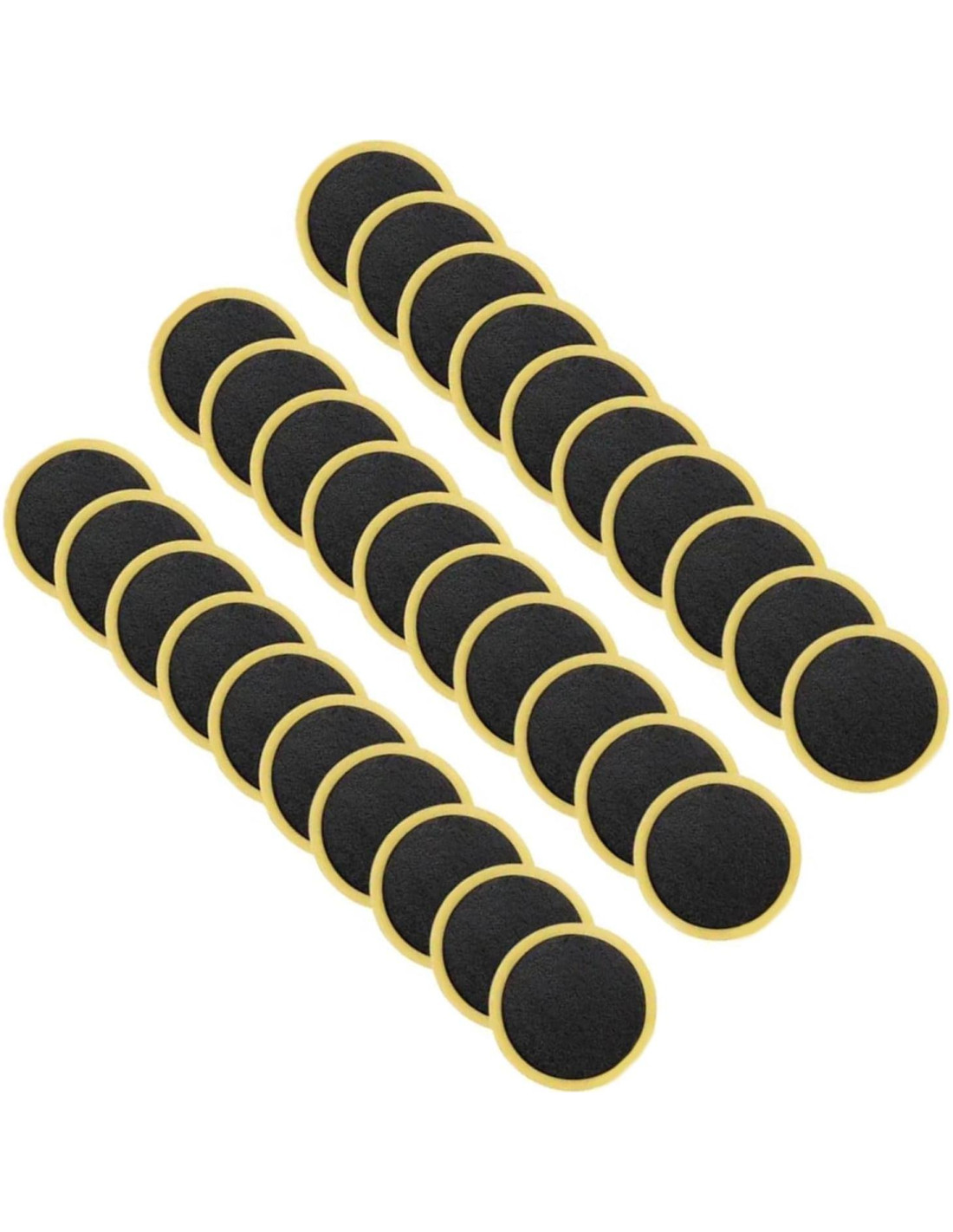 - Kit de Reparación Conveniente: Este conjunto incluye 30 parches de neumáticos autoadhesivos para reparar rápida y fácilmente pinchazos en neumáticos de bicicleta.