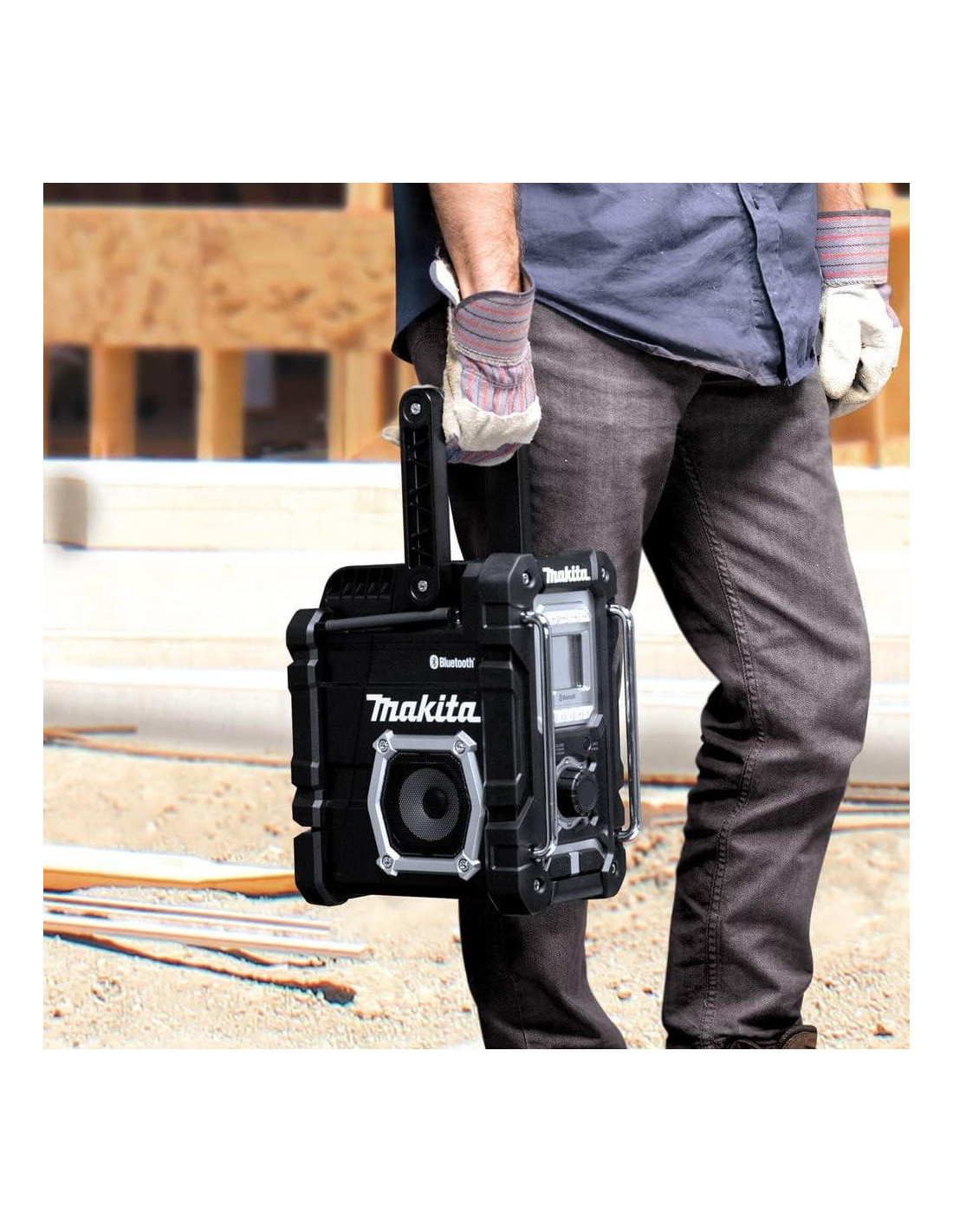 La radio de trabajo Bluetooth de 18V LXT de Iones de Litio (modelo XRM06B) ofrece un sonido rico y mayor compatibilidad en un tamaño más compacto. Es una adición perfecta para el taller o el lugar de trabajo. Es parte del sistema de Iones de Litio de 18V en expansión de Makita, el sistema de herramientas inalámbricas más grande del mundo alimentado por baterías de iones de litio de estilo deslizante de 18V. Las baterías de iones de litio de 18V de Makita tienen los tiempos de carga más rápidos en sus categorías, por lo que pasan más tiempo trabajando y menos tiempo sentadas en el cargador. El XRM06B ofrece un gran sonido en un tamaño compacto y está equipado con Bluetooth para conectar de forma inalámbrica su dispositivo móvil y reproducir música. Tiene un puerto auxiliar para compatibilidad con MP3 y ofrece un sonido estéreo rico de dos potentes altavoces laterales de 3" (7.62 cm). El XRM06B está diseñado para resistir condiciones difíciles en el lugar de trabajo con parachoques protectores y cuenta con una construcción resistente al polvo y al agua para mayor durabilidad. La radio puede ser alimentada por baterías de iones de litio de 7.2V, 12V max, 12V max CXT, 14.4V y 18V LXT (todas se venden por separado).