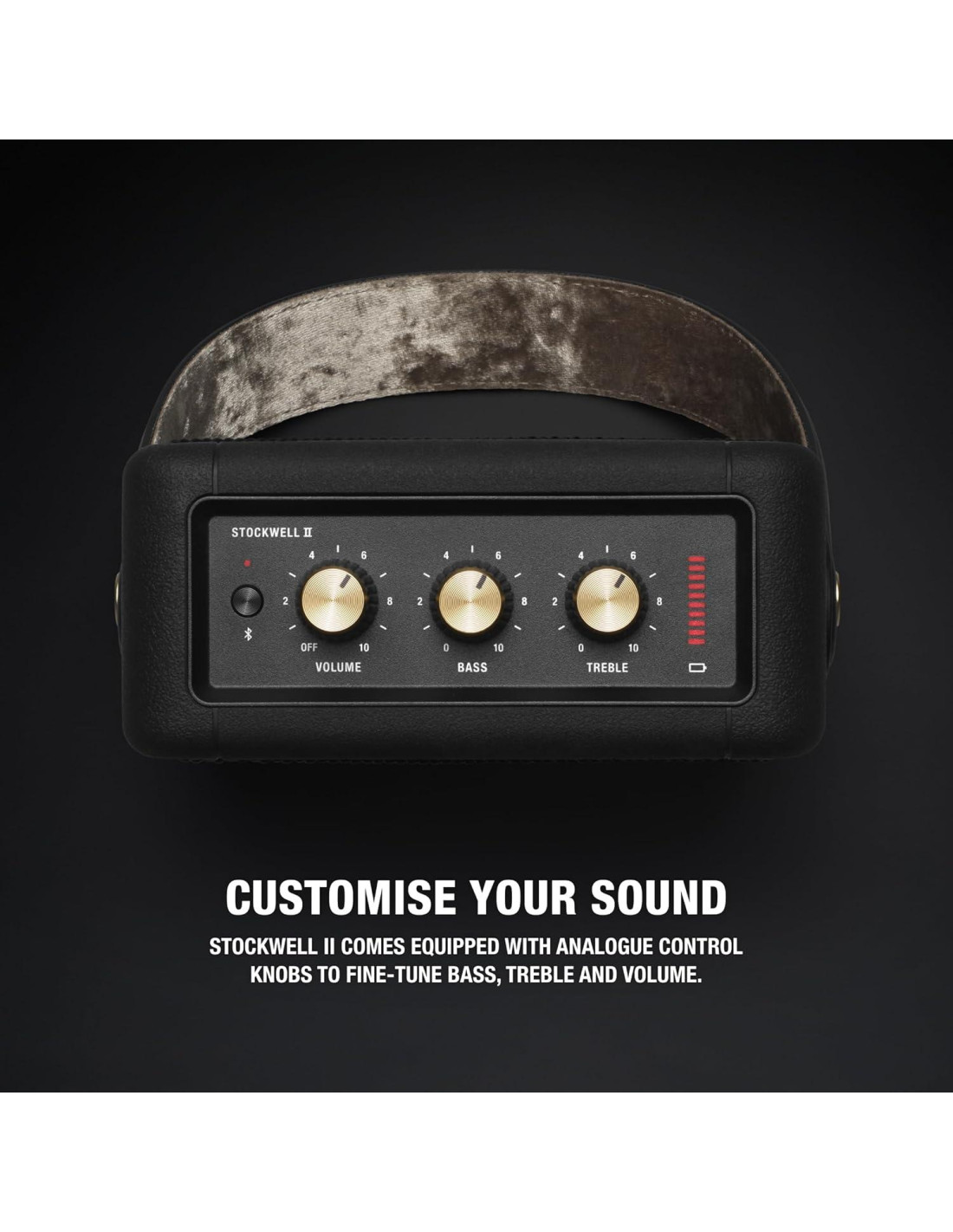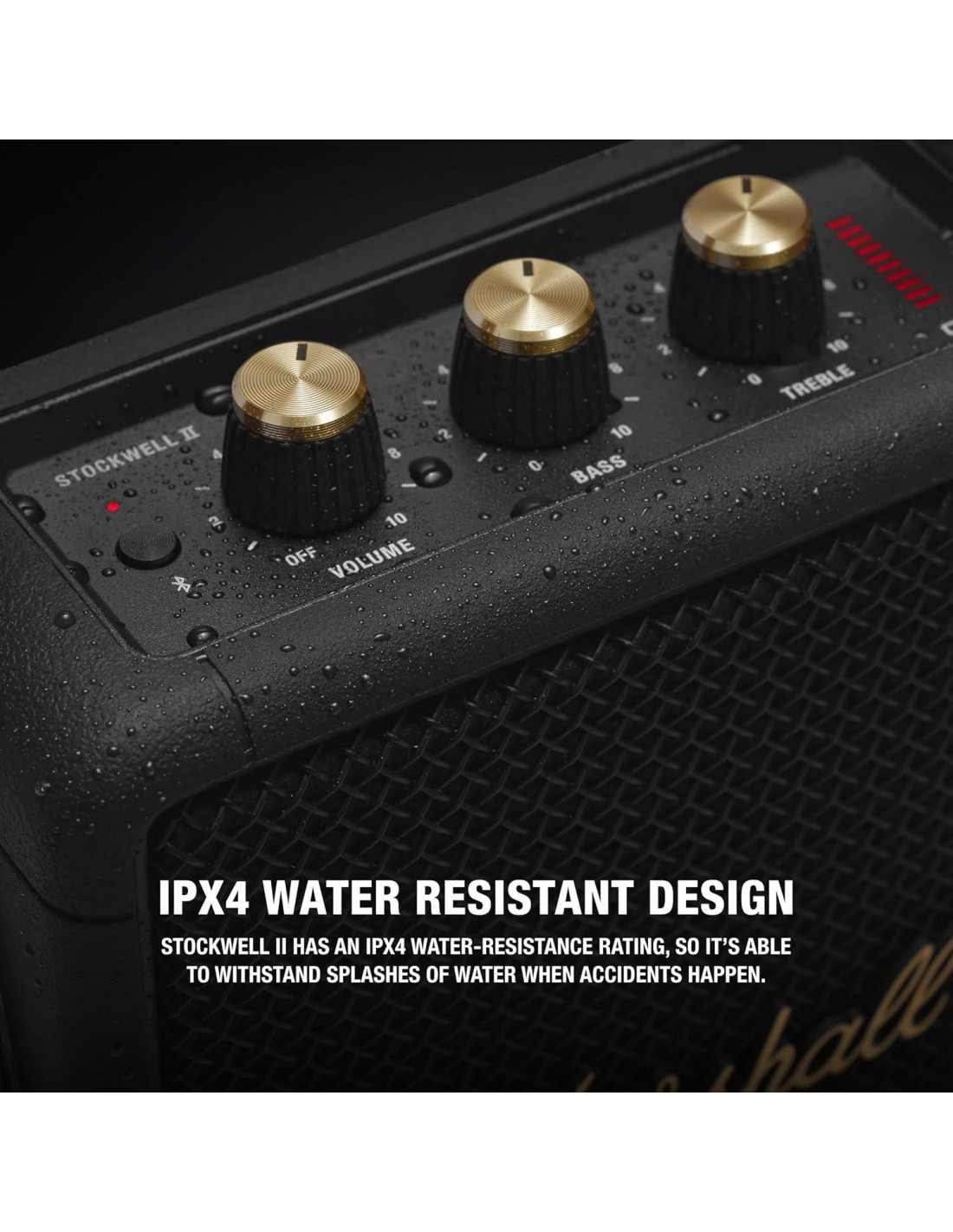 - Stockwell II ofrece más de 20 horas de tiempo de reproducción portátil con una sola carga. Su tamaño reducido y la correa de transporte inspirada en guitarras lo hacen perfecto para llevar contigo. Resistente al agua: Sí