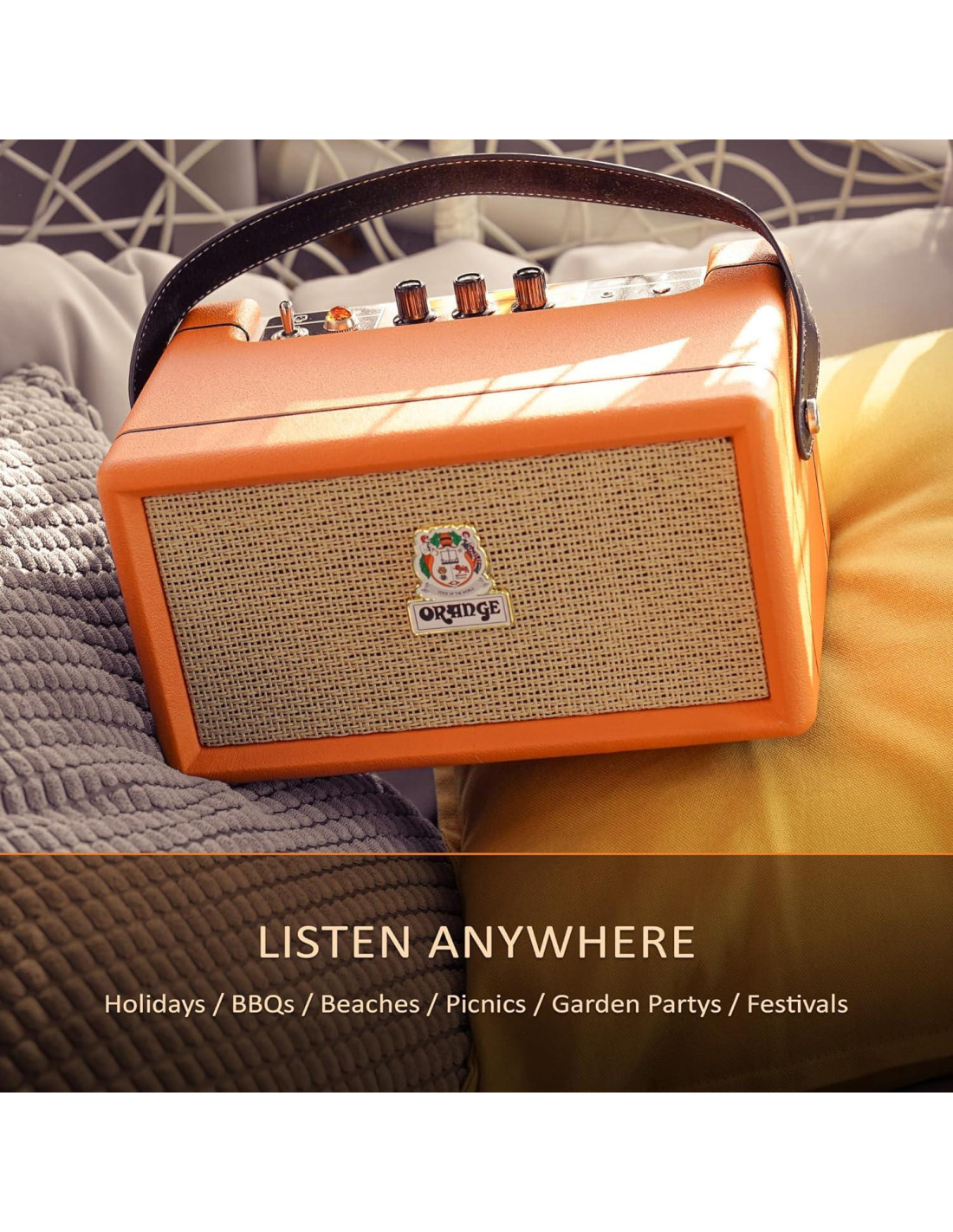 - PORTABILIDAD: Del equipo del Reino Unido que te trajo los amplificadores de guitarra más icónicos de los últimos 50 años, llega la Caja Naranja - un altavoz Bluetooth portátil compacto y potente de 50W con más de 15 horas de duración de batería. Adjunta la correa de cuero vegano para cuando estés en movimiento y lleva tu Caja Naranja en tu próximo descanso en la playa, viaje de camping o festival de música.