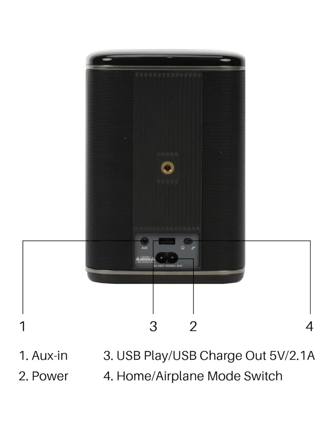- Características Adicionales: El altavoz cuenta con un puerto de carga USB, proporcionando una solución de carga conveniente para tus teléfonos inteligentes u otros dispositivos con una salida de 5V/2.1A.