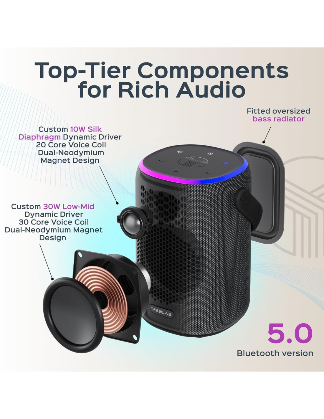 - Fuerte y Brillante - Altavoces de fiesta bluetooth inalámbricos y ruidosos con luces RGB, estéreo TWS y radiadores pasivos dobles transforman tu espacio interior o exterior en una experiencia sonora de alta energía.