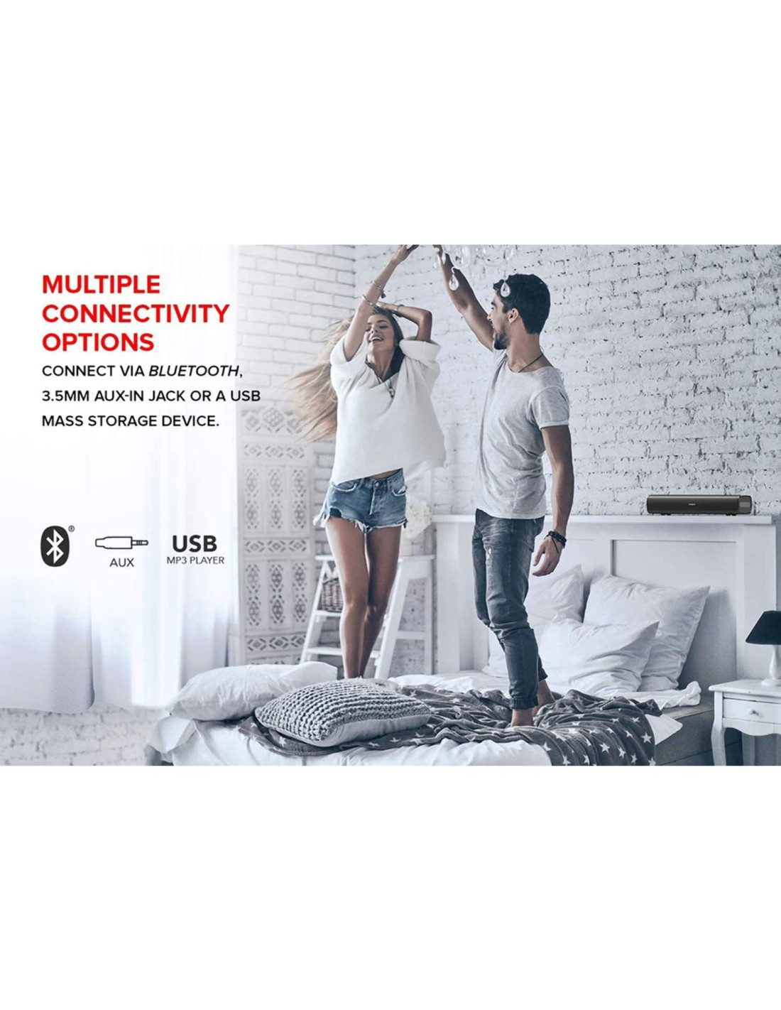 - Conectividad inalámbrica y por cable | con su modo de conectividad dual, puedes disfrutar de música inalámbrica Bluetooth de alta calidad o acceder a la conectividad por cable a través del conector AUX de 3.5mm. También funciona como un reproductor de música independiente a través de un dispositivo de almacenamiento masivo USB sin necesidad de encender la computadora u otras entradas externas