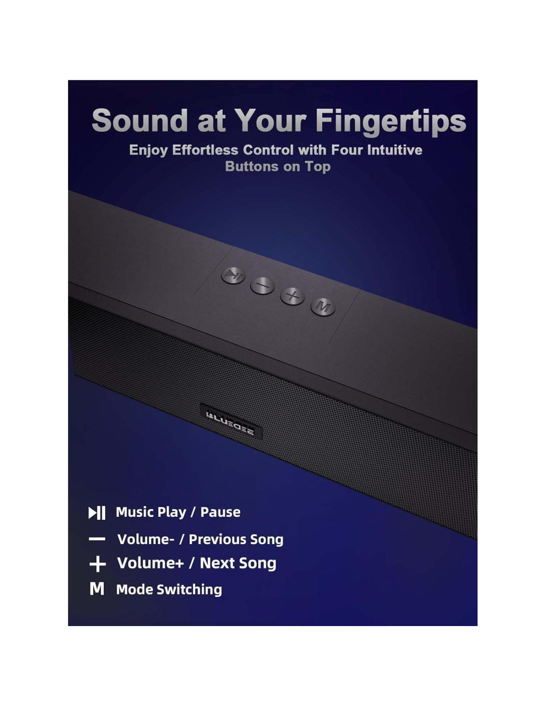 - [Fácil de usar] 4 botones en la parte superior de la barra de altavoces facilitan el acceso a diferentes funciones según sea necesario. El diseño compacto se adapta a cualquier lugar como la sala de estar, oficina, estudio, ahorrando espacio sin comprometer un rendimiento de audio impresionante.