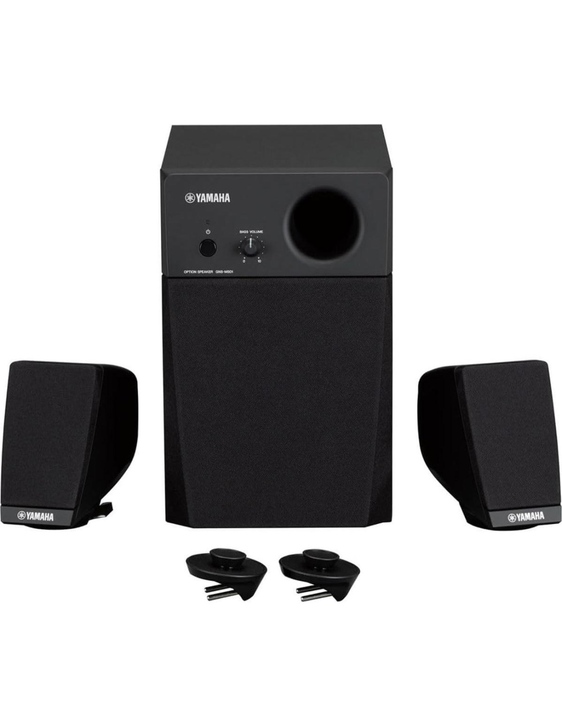 Un sistema de altavoces 2.1 de alta calidad diseñado especialmente para la Estación de Trabajo Digital Genos. Dos altavoces satélite de 20W y un subwoofer de 40W maximizarán la capacidad de sonido del Genos. Configurar el GNS-MS01 para trabajar con Genos es simple. Simplemente conecta los cables directamente a cada altavoz desde Genos y no hay necesidad de gestión de cables.