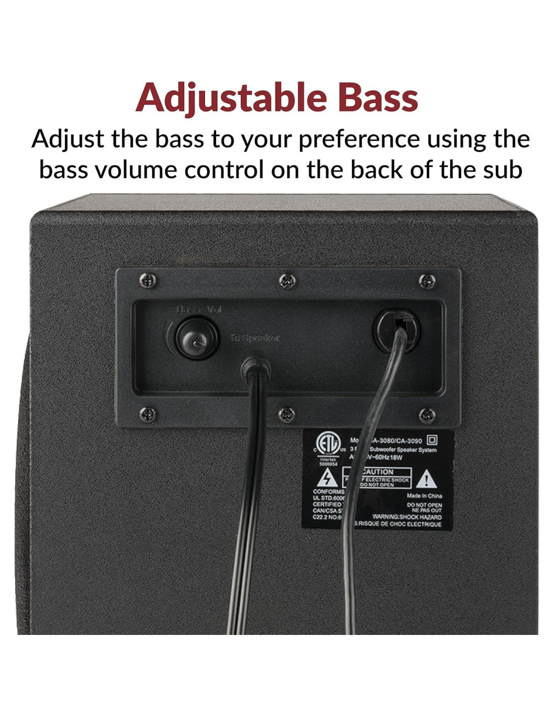 • Incluye altavoces CA 3090 2.1 con subwoofer, adaptador de corriente de 110V AC y guía del usuario; incluye garantía del fabricante de un año
