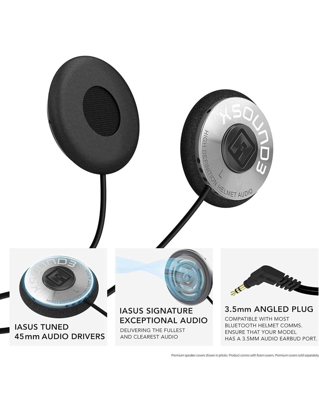 - Diseño delgado y construcción duradera - con un perfil compacto de 0.39 pulgadas (9.9 mm) y un diámetro de 1.77 pulgadas (45 mm), el XSound 3 se adapta perfectamente a la mayoría de los cascos. Diseñado para durar, los cables reforzados con Kevlar soportan hasta 10 lbs (4.54 kg) de tensión. Longitudes de cable: altavoz IZQUIERDO: 15.8" (40.13 cm), DERECHO: 7.9" (20.07 cm), más una extensión de 40" (101.6 cm).