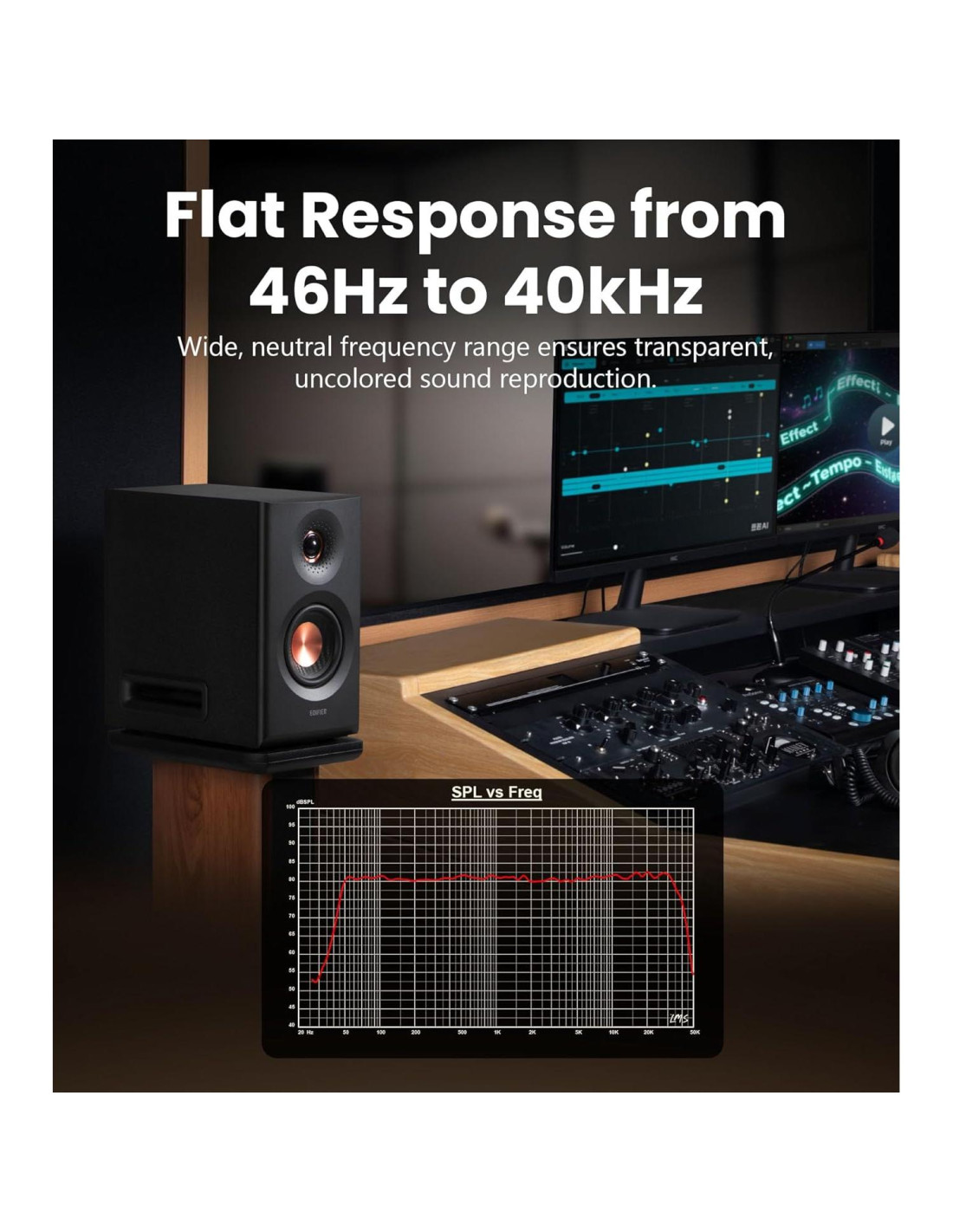- Rendimiento de Audio de Grado Profesional - Con una respuesta plana de 46Hz-40kHz, reproduce cada detalle con claridad. Ofreciendo 110W (RMS) de potencia total de salida y SPL de hasta 101dB (@1m), es adecuado para escucha en campo cercano y lo suficientemente potente como para llenar una sala de estar normal.