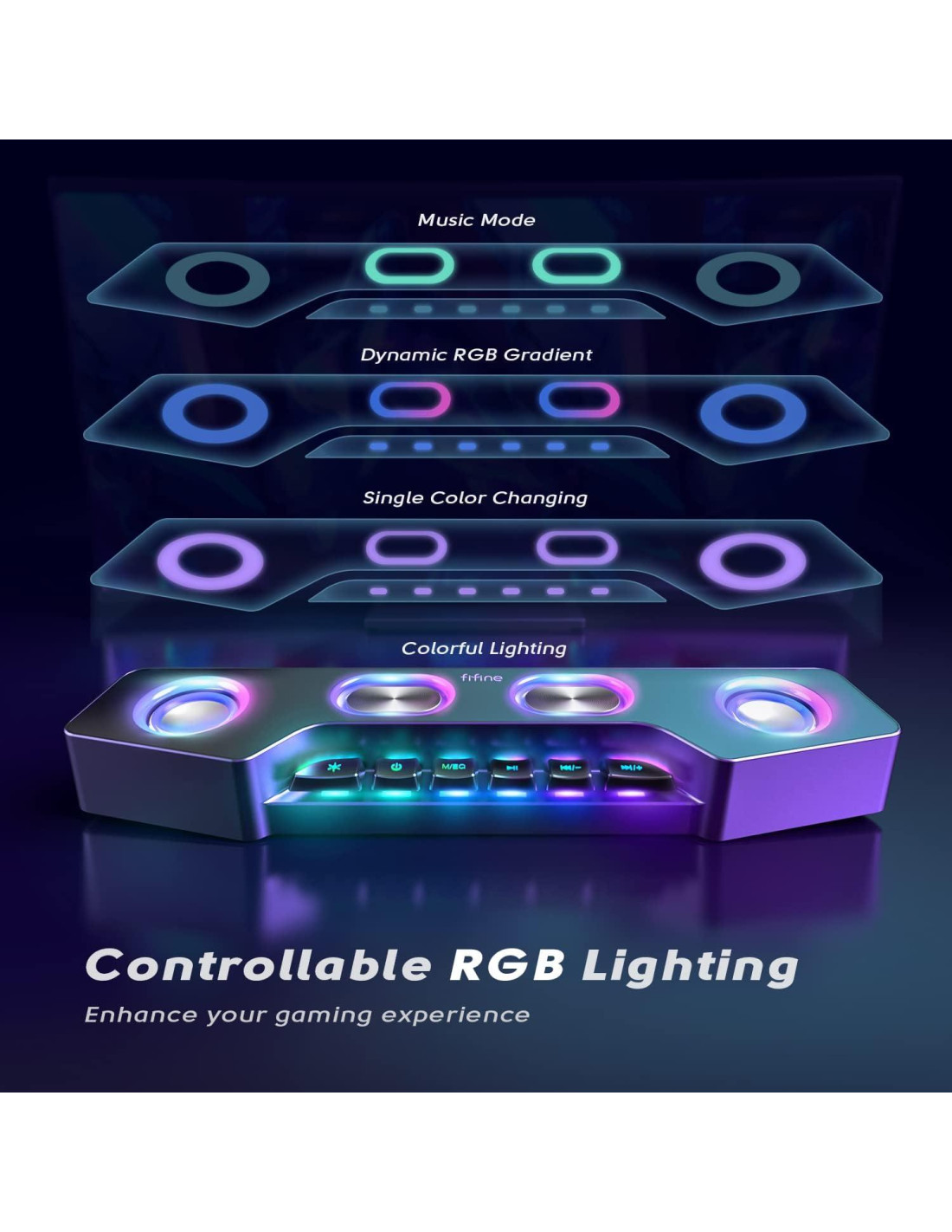 - [Iluminación RGB] 4 tipos de modos RGB tienen como objetivo embellecer tus escenas de uso, que son adecuados para juegos, fiestas, patios traseros y pequeñas reuniones. La iluminación colorida en los altavoces de PC te hará sumergirte verdaderamente en la música.