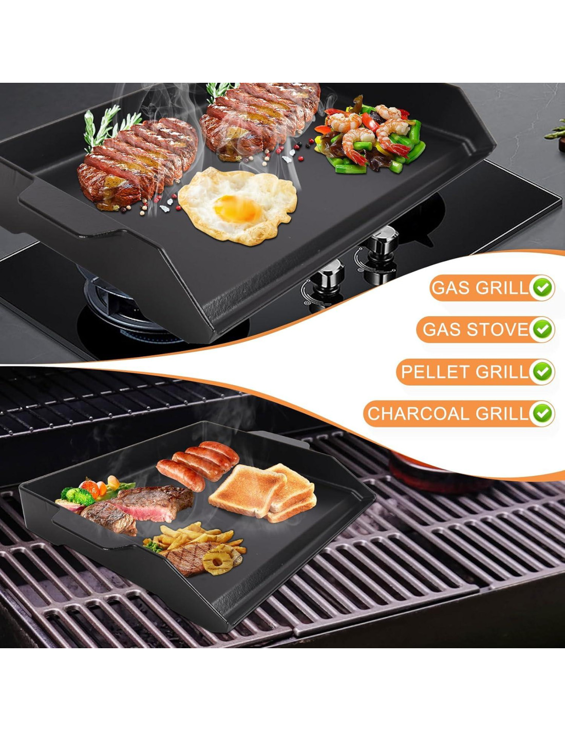 - Universal para Marcas de Parrillas Populares: Esta plancha es perfecta para el inserto de plancha Weber Spirit 2, plancha de hierro fundido Traeger, plancha Blackstone. Esta versátil plancha de gas de fondo plano es compatible con marcas de barbacoa líderes como Charbroil, Nexgrill, Blackstone, Traeger, Cuisinart, Masterbuilt y más. Se ajusta a la serie Weber Genesis, serie Genesis II y II LX, para Weber Spirit 300, modelos de la serie Summit. Es un accesorio esencial para barbacoa para aquellos que priorizan la calidad en su equipo de asado.