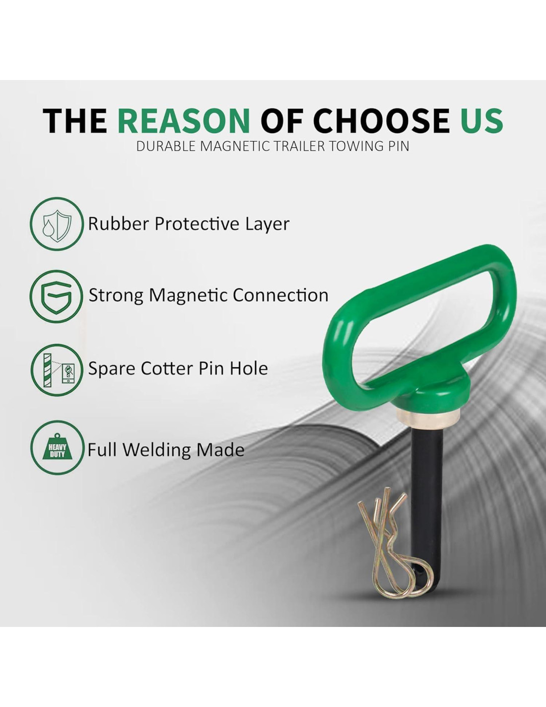 - Acabado verde vibrante: Agrega un toque de color a tu configuración de remolque con este llamativo pasador magnético verde.