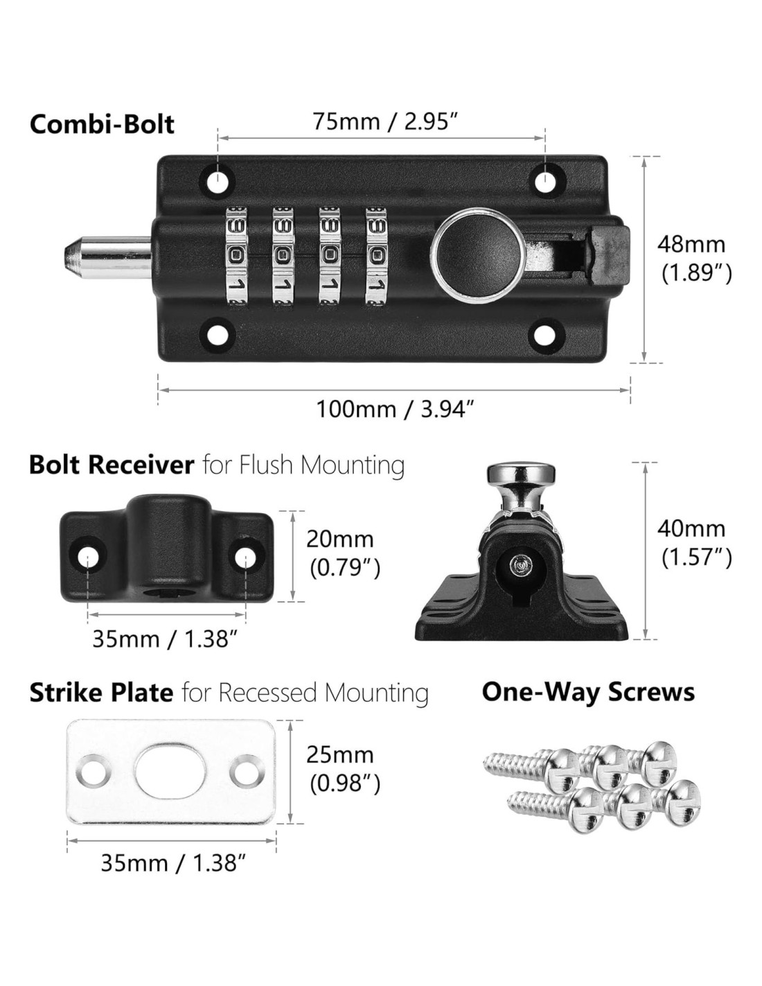 - [Segura y Duradera]: Este pestillo de puerta está compuesto por un cuerpo de cerradura de aleación de zinc y un cerrojo cilíndrico de combinación de aleación de zinc sólido engrosado, que puede soportar condiciones climáticas adversas y daños severos. La cerradura de combinación tiene un recubrimiento resistente al óxido y un fuerte rendimiento anticorrosión.