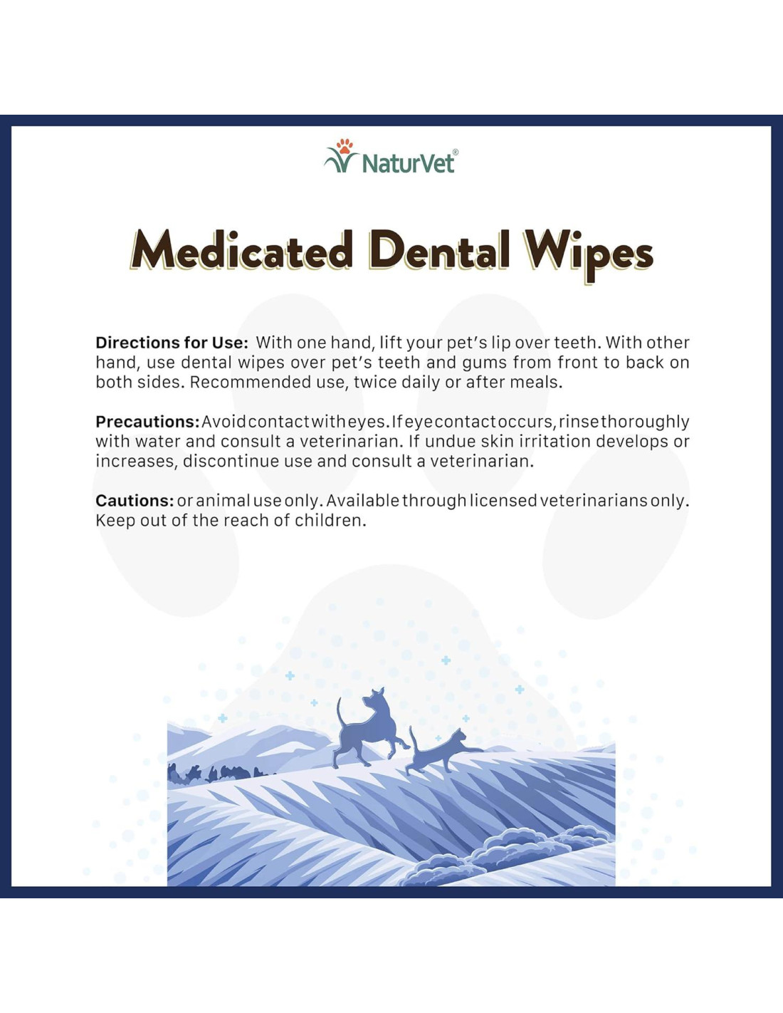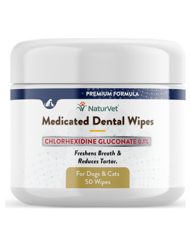 Las Toallitas Dentales Medicadas de NaturVet para Perros y Gatos son una solución con actividades antimicrobianas que reducen la placa, el cálculo dental y la acumulación de sarro en los dientes de las mascotas con el tiempo. Las toallitas dentales también reducen las bacterias que causan mal aliento.