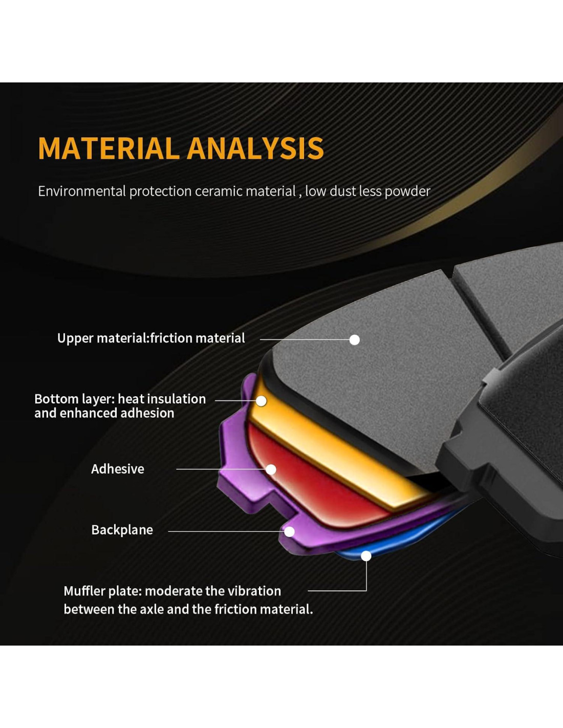 - MATERIAL EXCELENTE: Las pastillas de freno delanteras y traseras de cerámica de alta densidad están hechas de materiales de alta tecnología como grafito de grano grande/latón/cerámicas avanzadas (sin asbesto), semi-metálico, etc. con alta resistencia a la temperatura, resistencia al desgaste, estabilidad de frenado, reparación de discos de freno dañados, protección ambiental y uso sin ruido. Larga vida y otras ventajas superan las desventajas de los materiales y la tecnología de las pastillas de freno tradicionales.