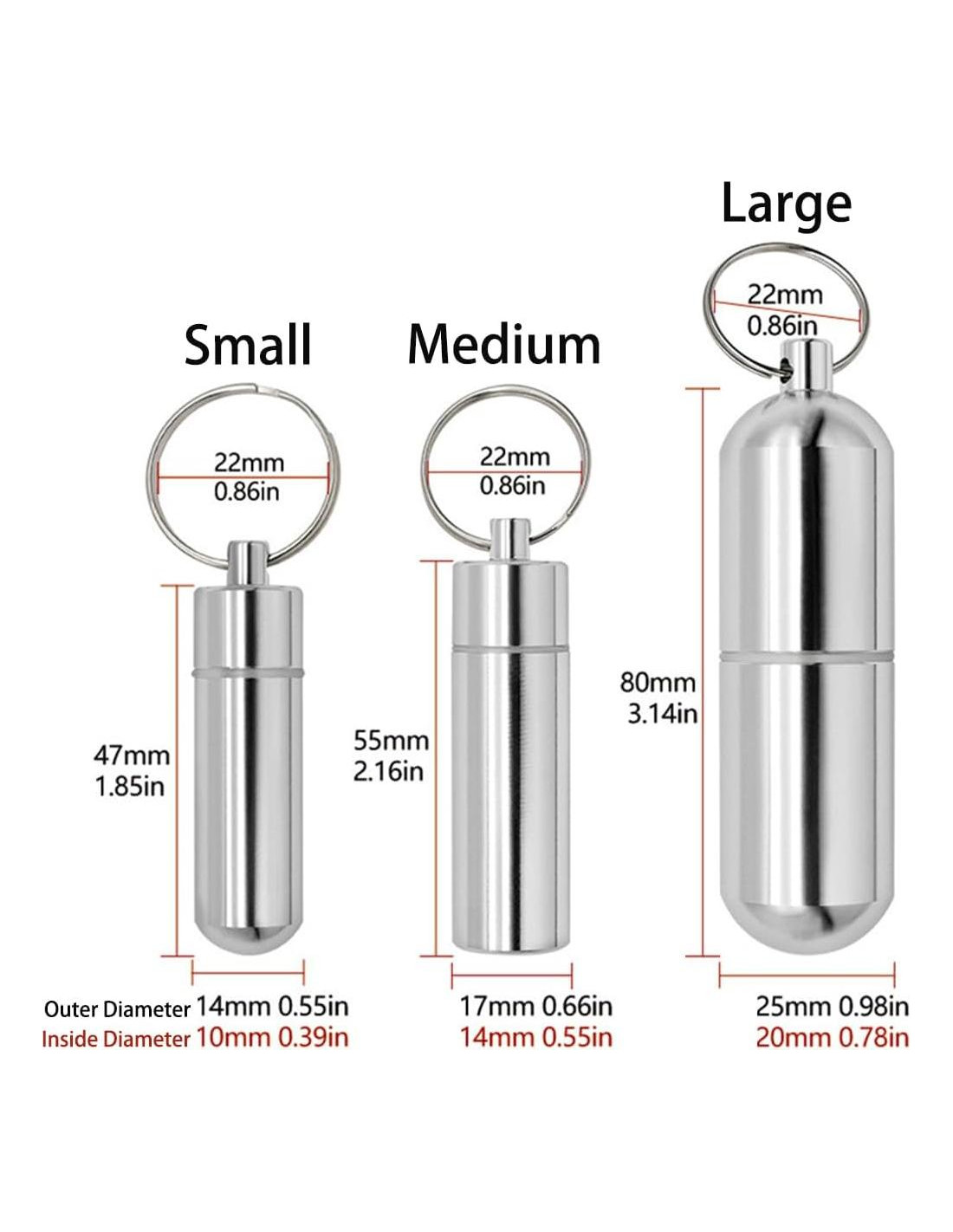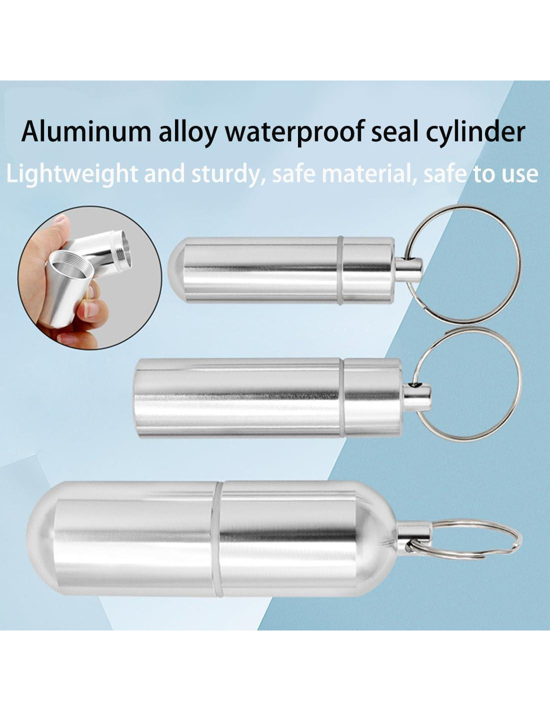 - Impermeable y Resistente: El titular de pastillas tiene una junta tórica de goma en la tapa de rosca que lo hace hermético y a prueba de agua, manteniendo tus pastillas dentro seguras y secas cuando estás de vacaciones, de viaje, acampando o en cualquier actividad al aire libre. Este pequeño titular de pastillas está hecho de una buena aleación de aluminio en lugar de plástico, lo que protege completamente las pastillas en su interior.