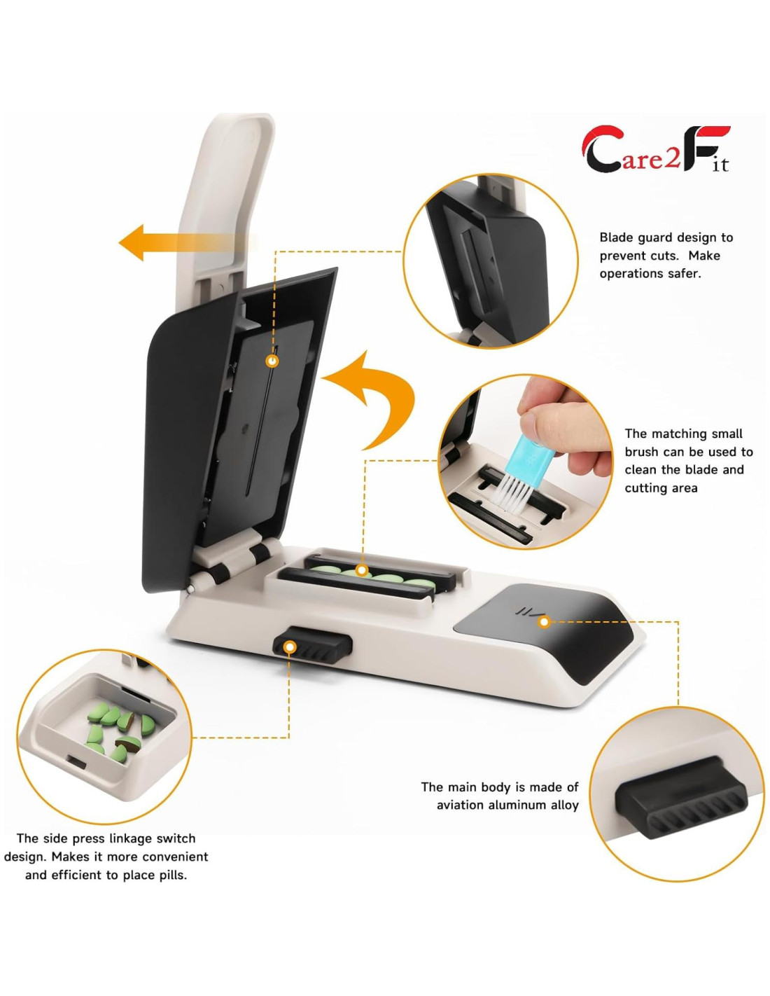 - [Cortador de pastillas de múltiples tamaños] El dispositivo cortador de pastillas Care2fit puede centrar rápidamente y dividir con precisión múltiples pastillas a la vez. Nuestro cortador de pastillas Care2fit puede acomodar de manera segura pastillas de cualquier tamaño, redondas, rectangulares u ovaladas. Este divisor de pastillas para pastillas pequeñas y diminutas puede cortar pastillas con un ancho de 2mm-15mm, por lo que puede cortar fácilmente pastillas diminutas de 2.5mg.