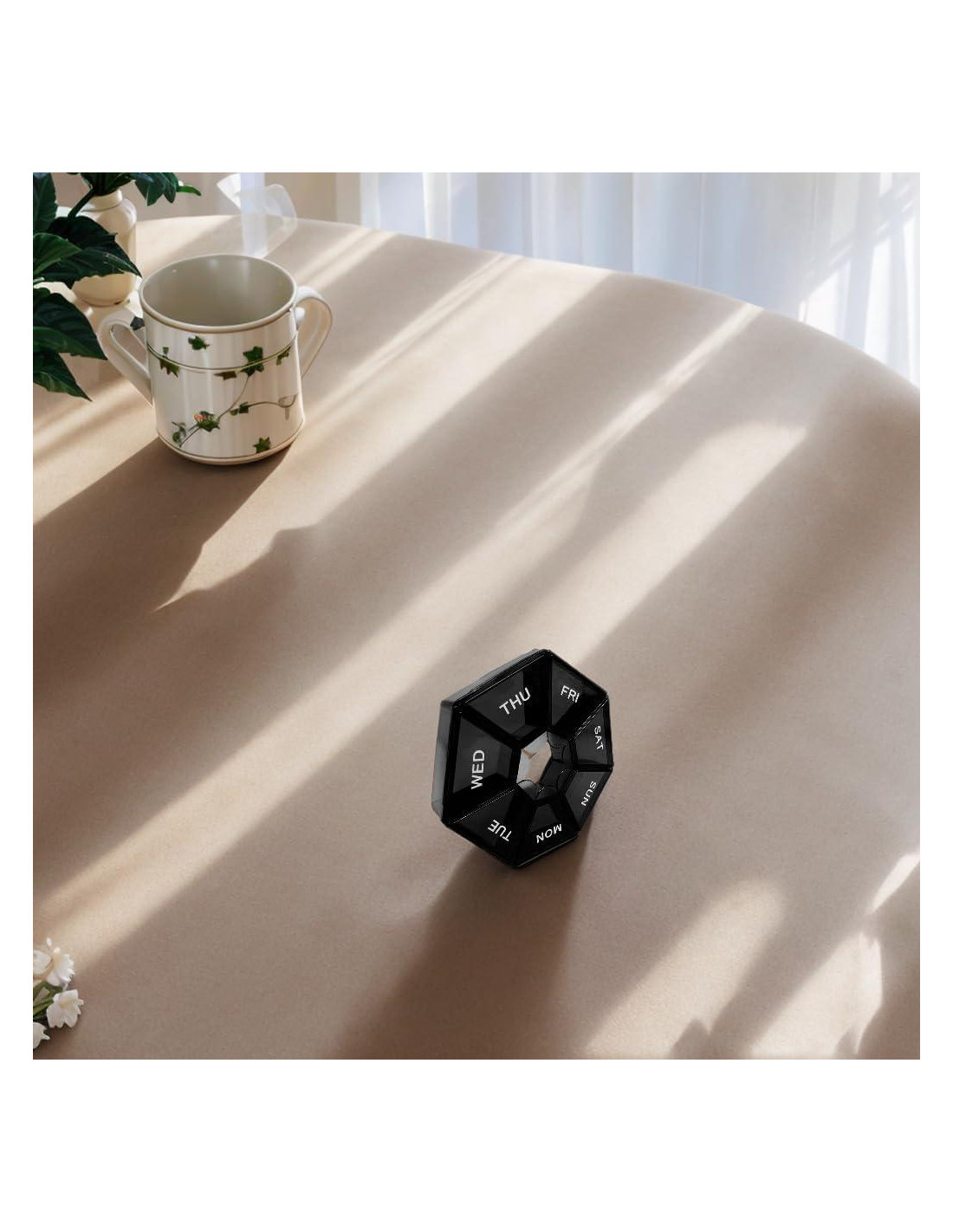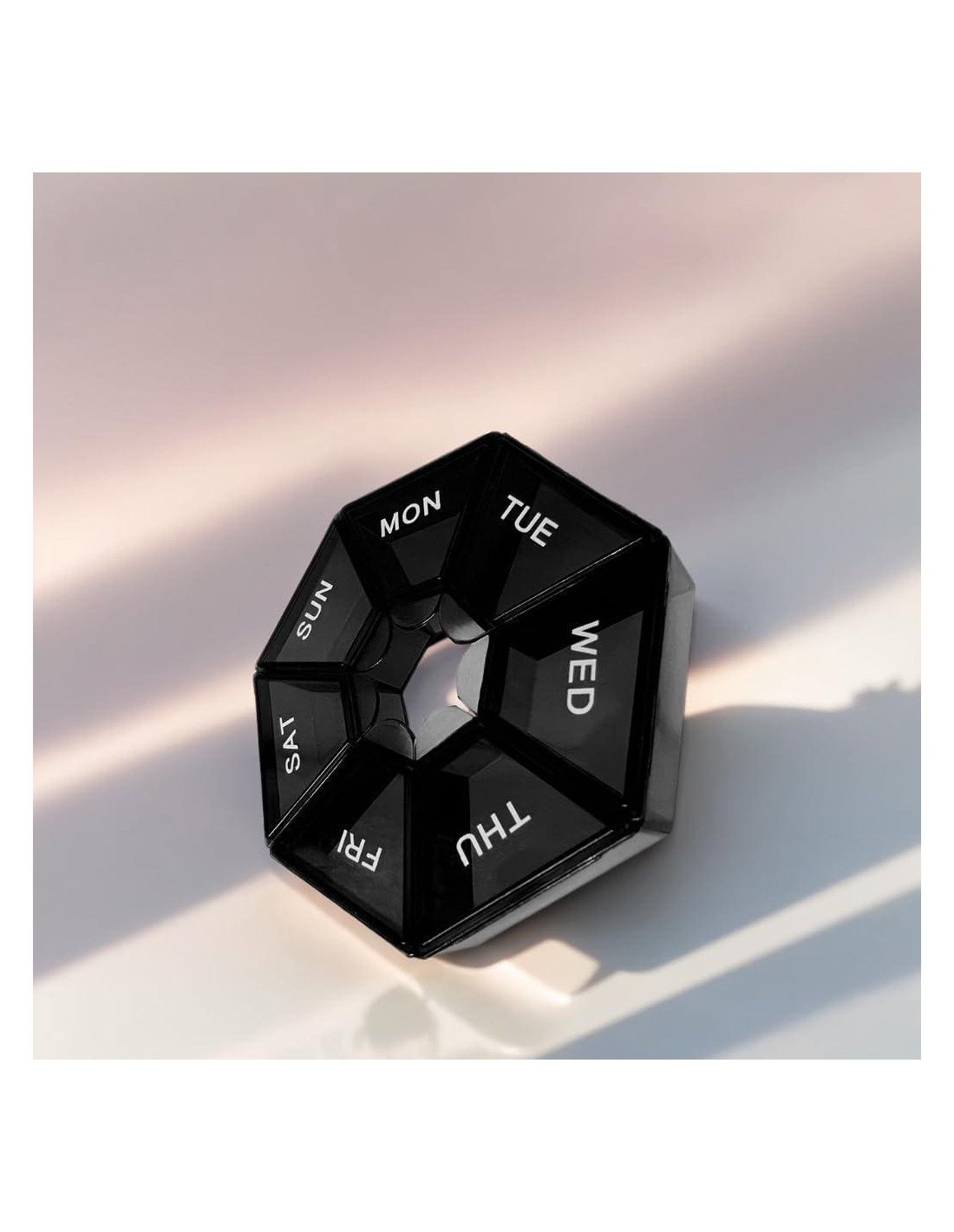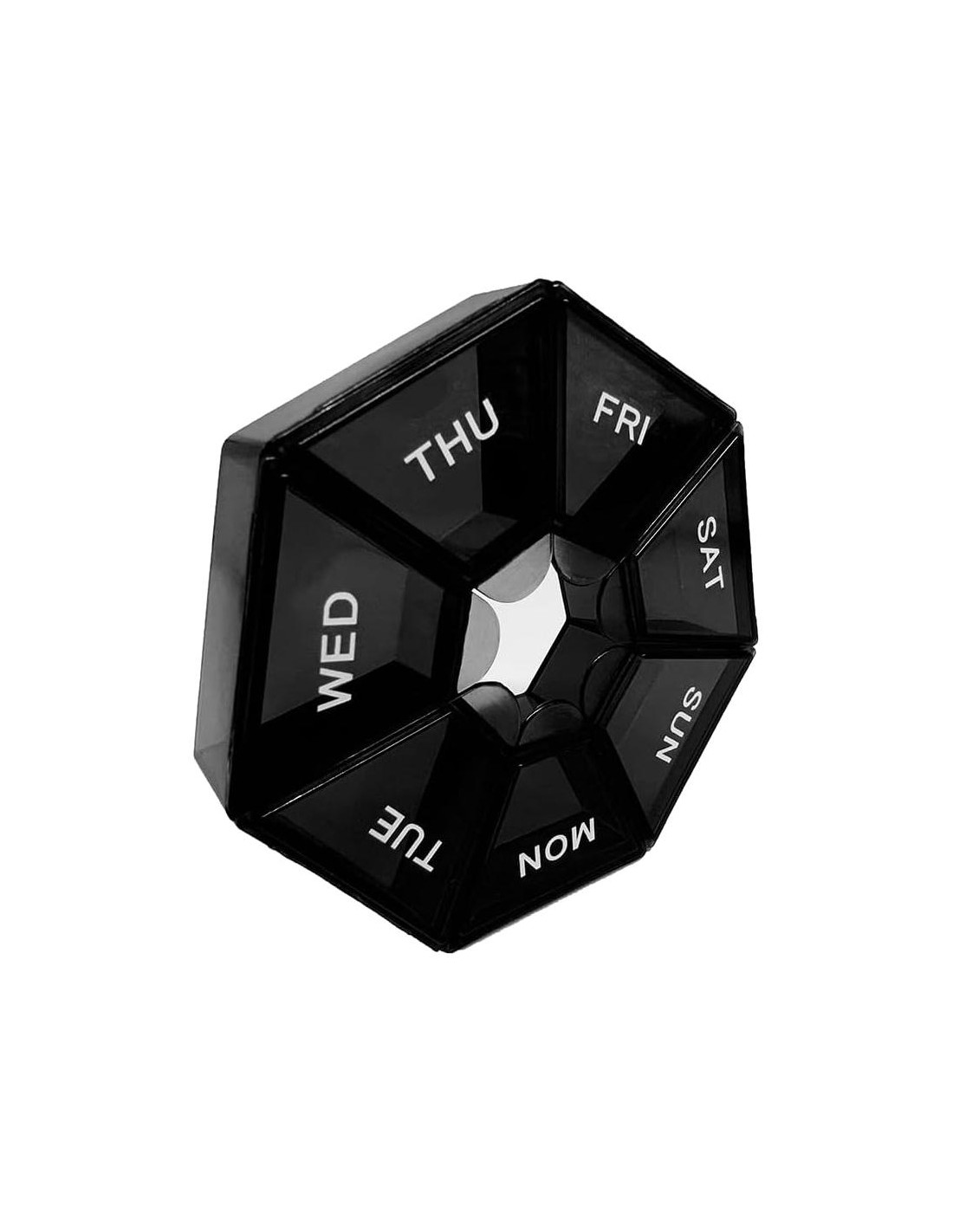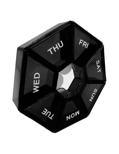 - Caja de pastillas: con 7 lados, cada uno etiquetado con el día de la semana para asegurar conveniencia y organización, la caja de pastillas cuenta con un clip de interruptor reforzado y partes conectivas en la base para minimizar derrames y doblados, ideal para ayudarte a tomar tu medicación puntualmente.