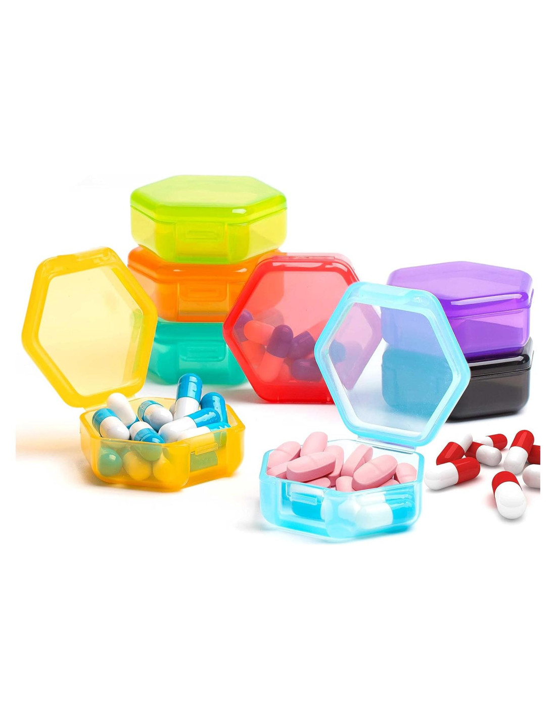 - [Funciona para Pastillas y Cualquier Otra Cosa] Perfecto para almacenar y organizar cualquier pequeño artículo. Los colores también son divertidos y brillantes. Los contenedores portátiles y translúcidos facilitan distinguir el contenido en el estuche. Funcionan para mantener todo tipo de cosas pequeñas seguras y localizables en un desorden. Con el tiempo (múltiples años), sigue siendo un muy buen valor.