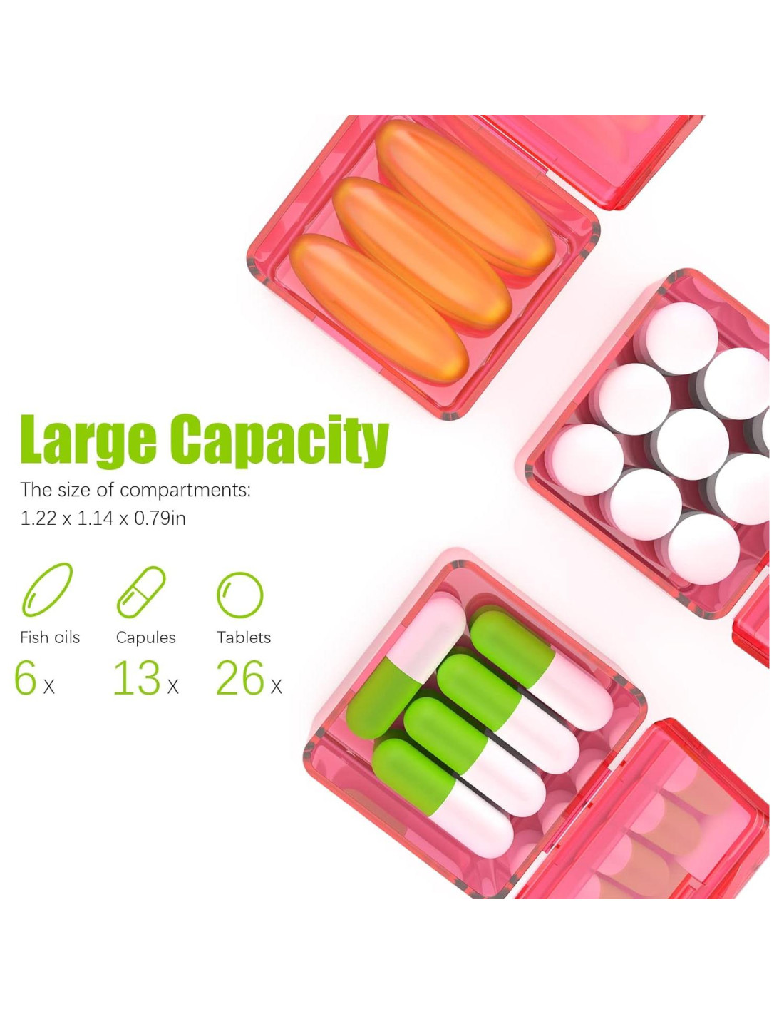 - Gran Capacidad: El tamaño de cada caja individual es 3.3 cm x 3.0 cm x 2.0 cm, un espacio suficiente para tus pastillas, sin preocupaciones por amontonar muchos medicamentos a la vez, lo que es realmente adecuado para quien necesita tomar múltiples medicamentos regularmente.