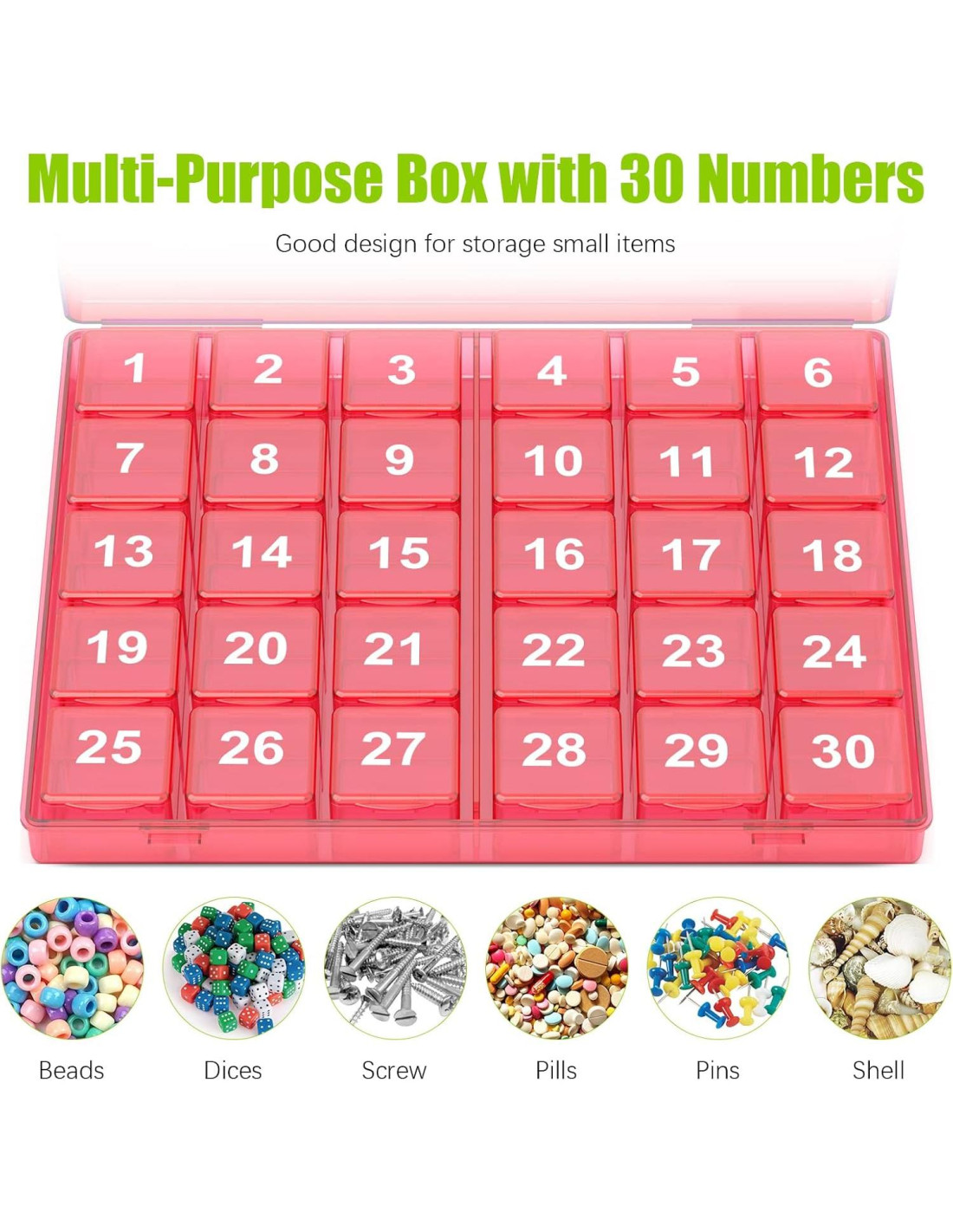 - Organizador de Pastillas Mensual: 30 compartimentos te permiten organizar fácilmente tus pastillas durante 30 DÍAS. Liberándote de organizar pastillas manualmente día a día o semana a semana, lo que te ahorra mucho tiempo.