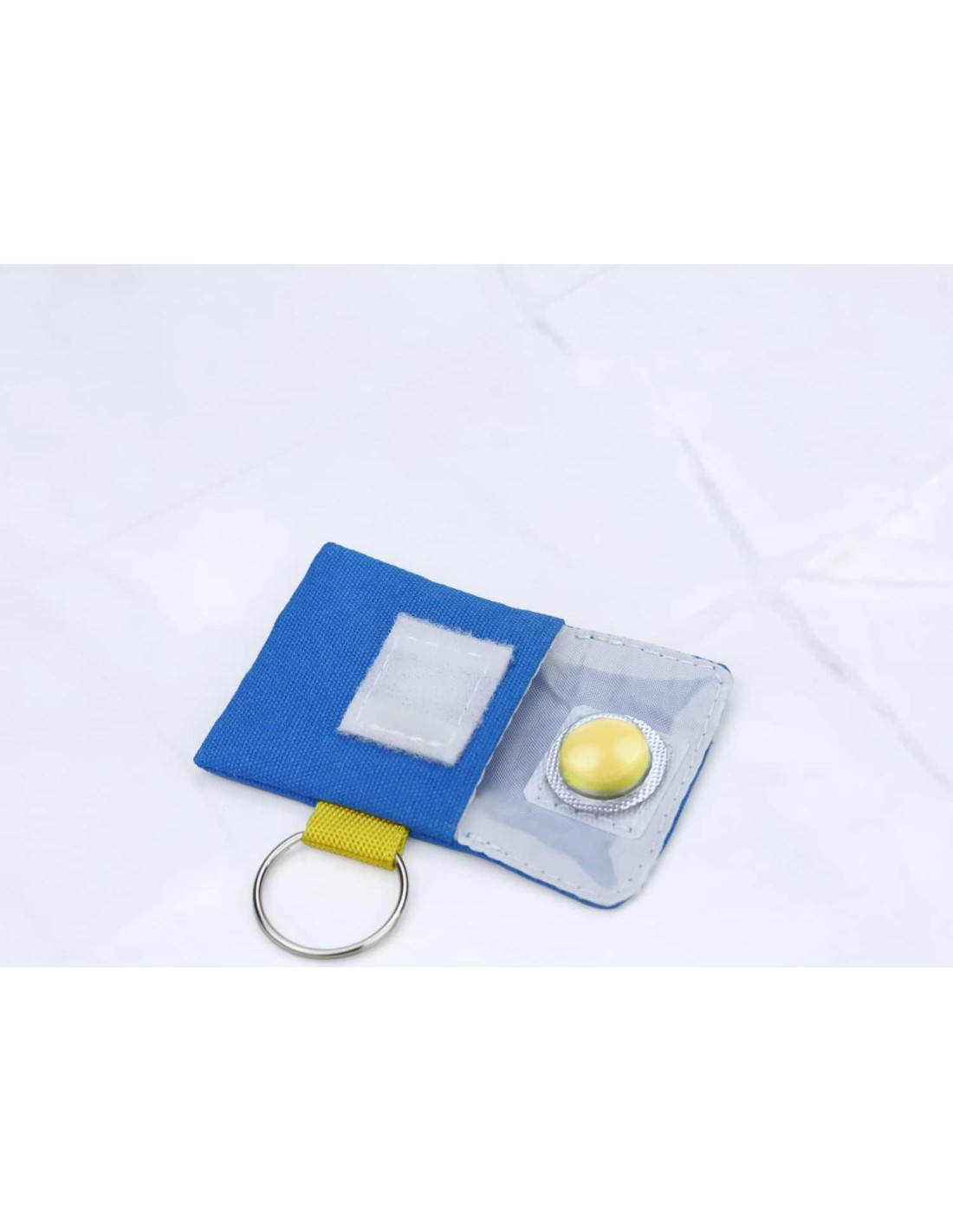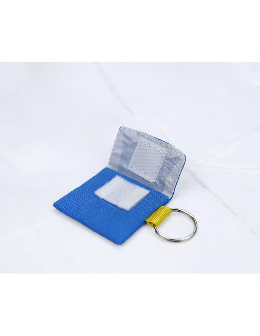 - LAVABLE Y REUTILIZABLE: El soporte de pastillas de llavero está hecho de algodón suave con un forro impermeable y cierre de Velcro para mantener las pastillas seguras y secas.