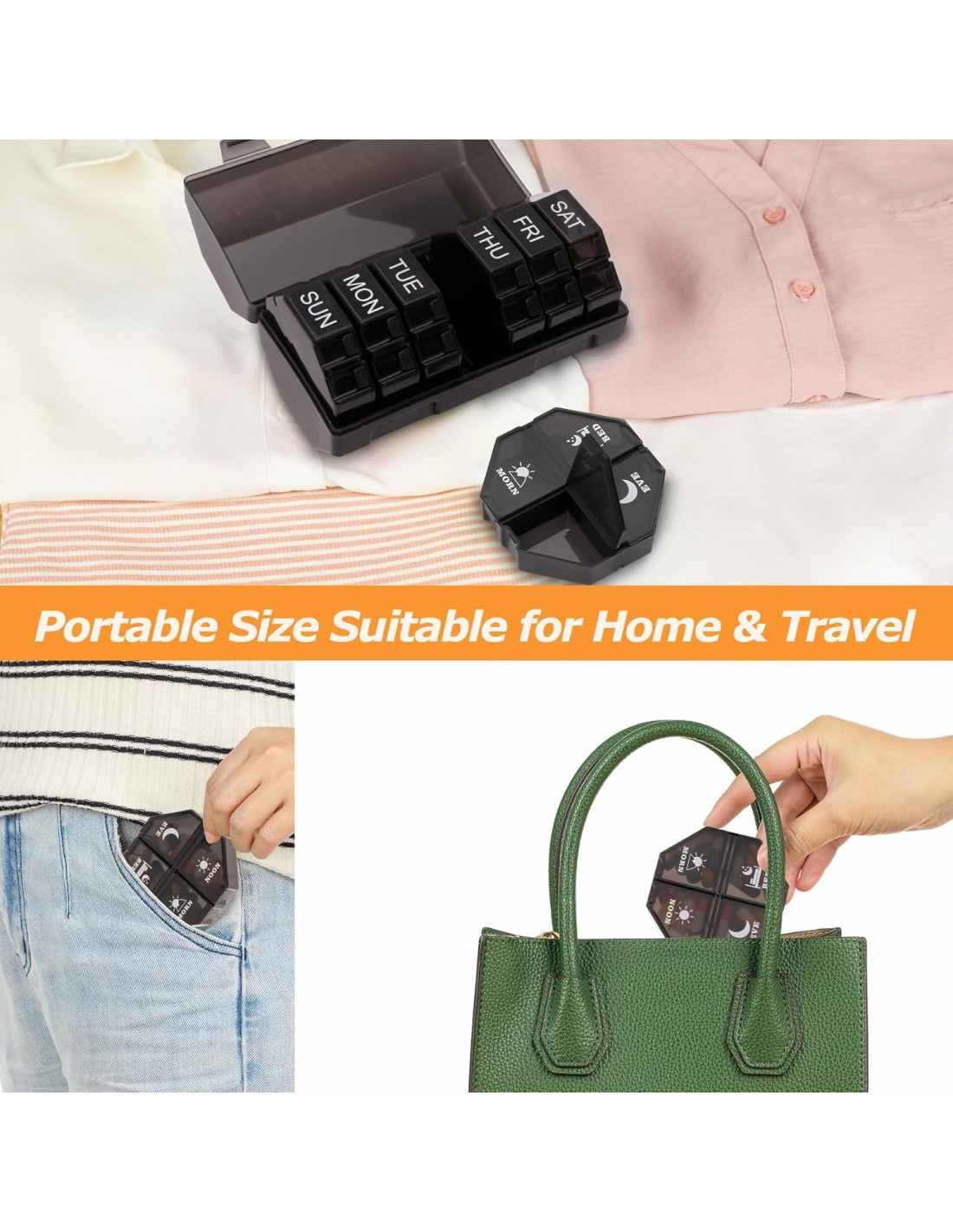 - Fácil de Llevar: El dispensador de pastillas portátil tiene un diseño compacto y no ocupa mucho espacio. Cada día tiene un organizador de pastillas extra grande separado, cuando salgas, de negocios o de viaje, puedes llevar unos días de las cajas de medicina xl, ponlas en el bolso, maleta, bolsillo o cartera, lo cual es muy conveniente.